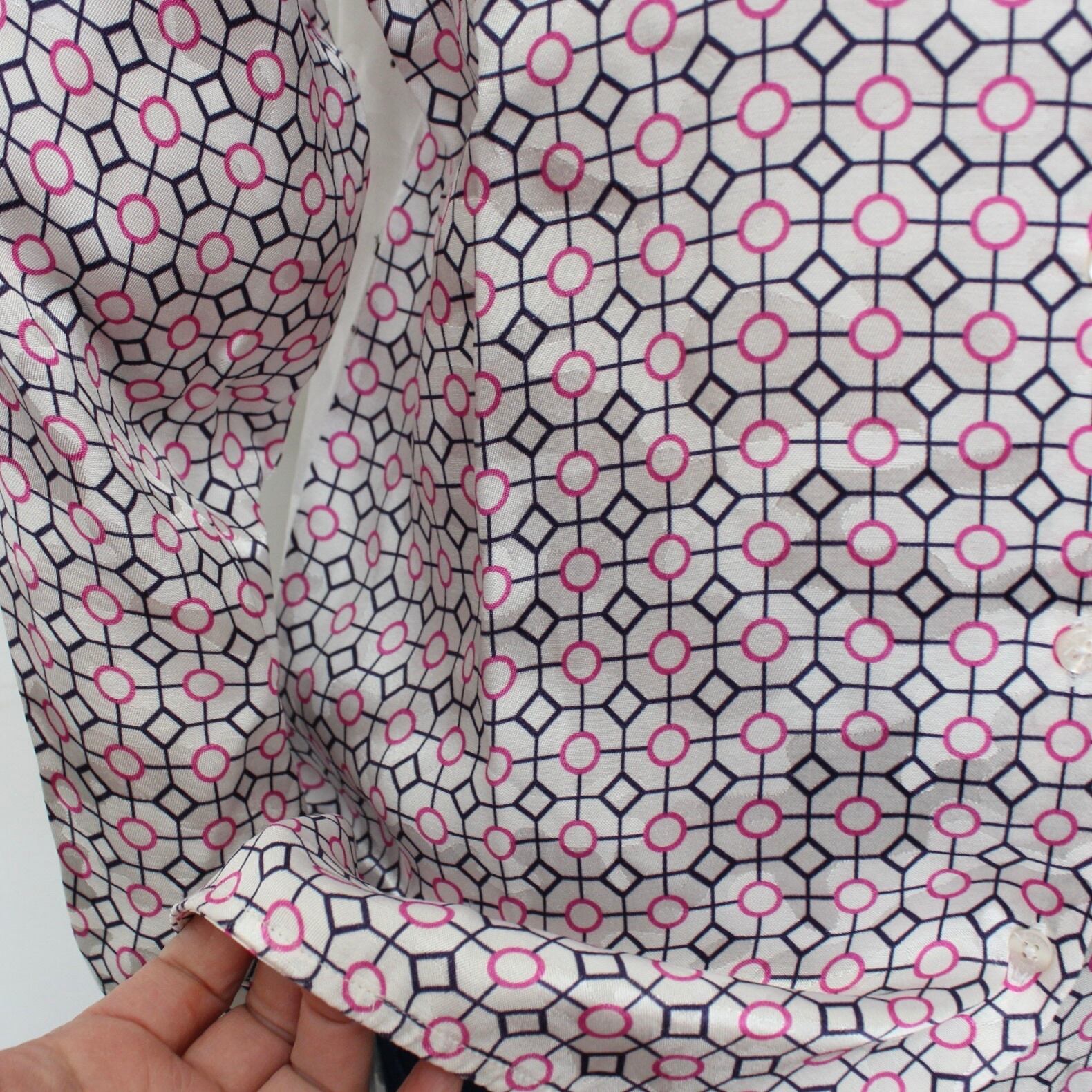 **VILAGALLO ホワイト宇宙✖️幾何学プリントエコヴェロレーヨン素材ブラウスは、幻想的な宇宙柄と幾何学模様が調和した特別な一着です!高品質なエコヴェロレーヨン素材による滑らかな肌触りが特徴で、華やかな迷彩時がらデザインが光沢感が目を引きます。このブラウスは、リラックスしたながらもスタイリッシュなシルエットが魅力で、さまざまなシーンで活躍することができます♪**