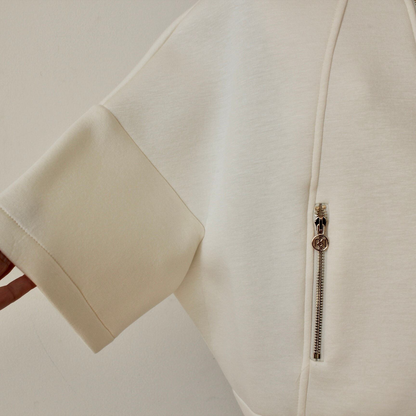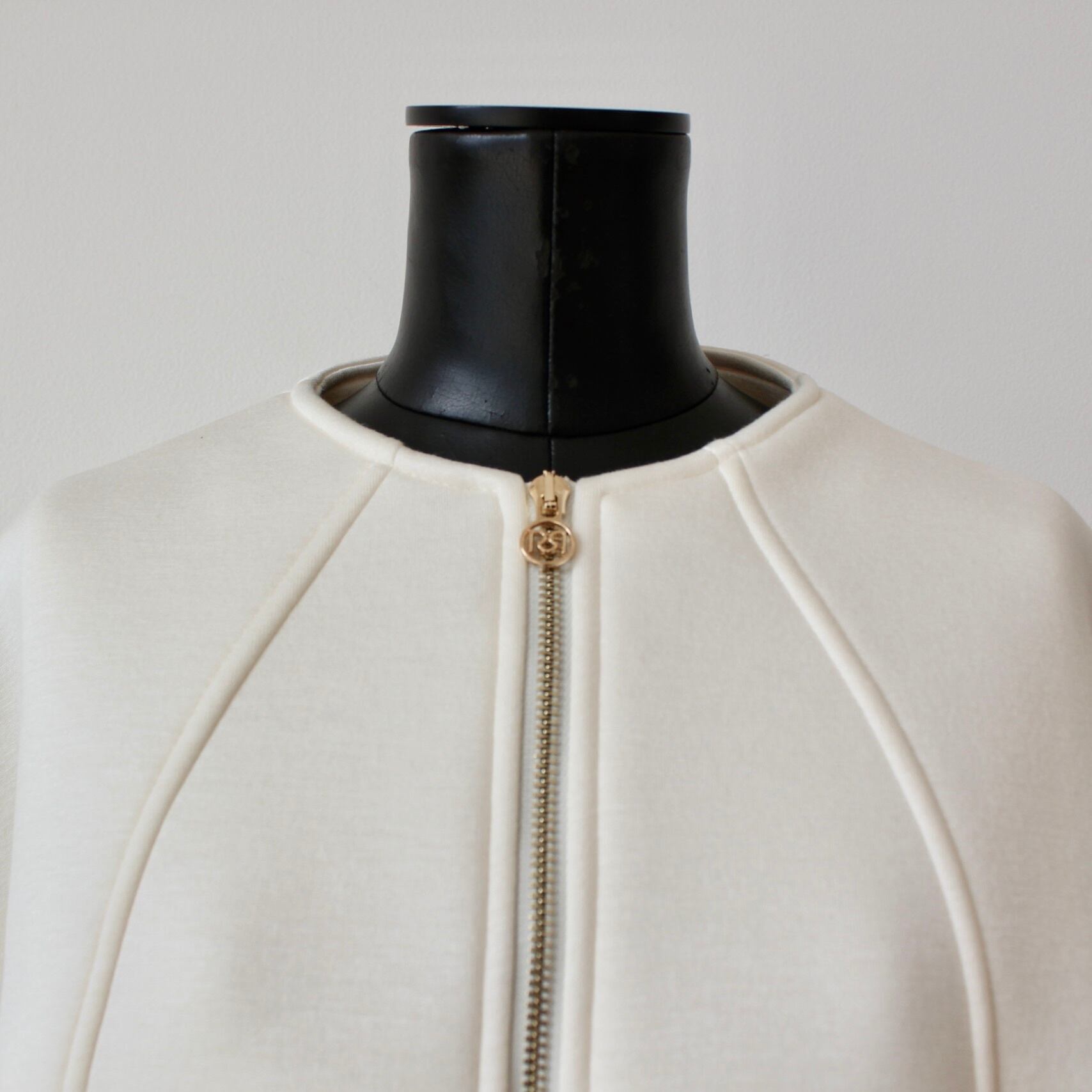 **RINASCIMENTO オフホワイトボンティングジップアップジャケットは、爽やかなオフホワイトのカラーとデザイン、ポンテォング素材の優れた機能性を兼ね備えたイタリア製のアウターです!高品質な素材により、通気性良く肌触りが快適で軽量、着心地も抜群です。ジップアップ仕様は、カジュアルからフォーマルまで多様なスタイルに合わせやすく、幅広いシーンで活躍するジャケットです♪**