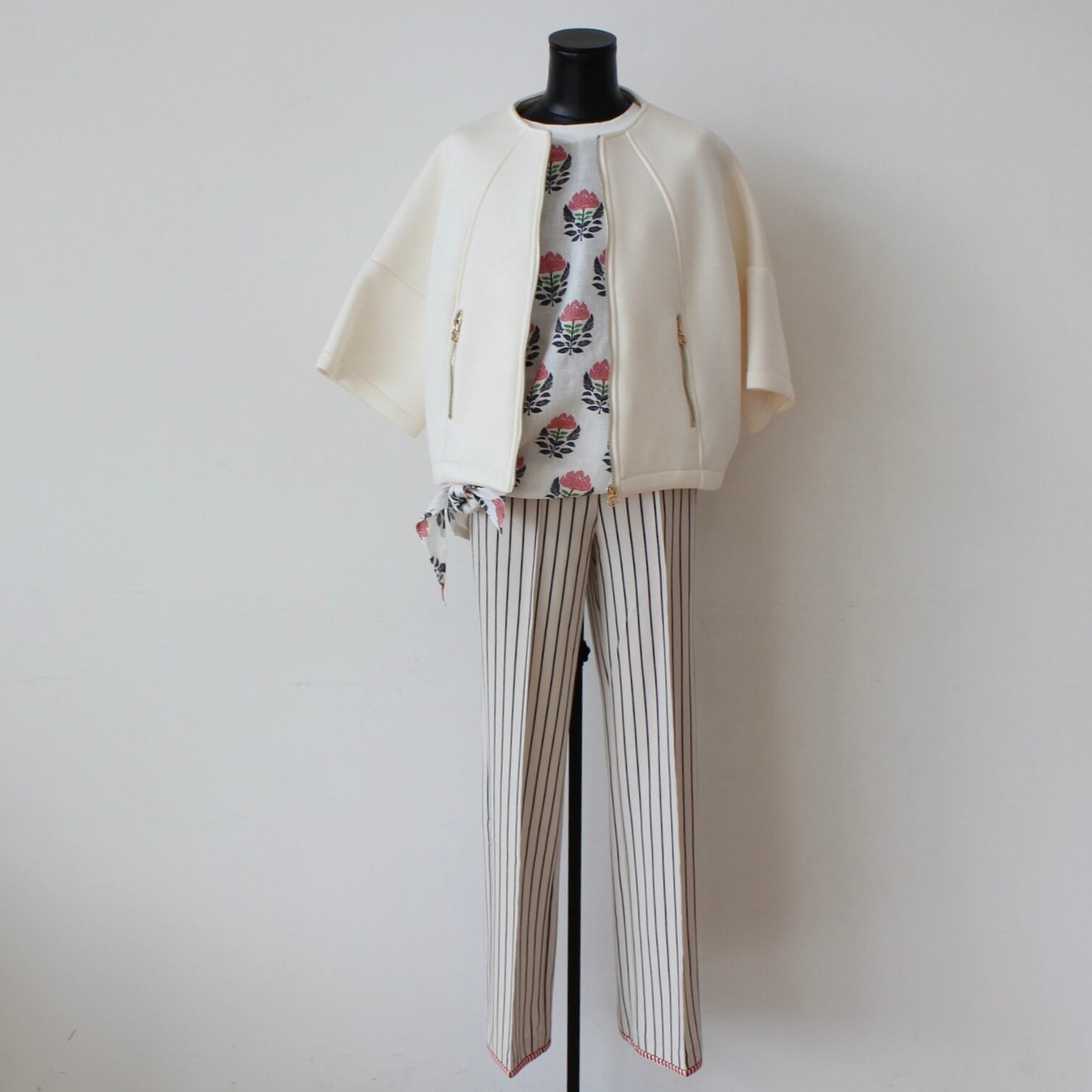 RINASCIMENTO オフホワイトボンティングジップアップジャケット ITALY: RIN12007 ¥39,000+tax