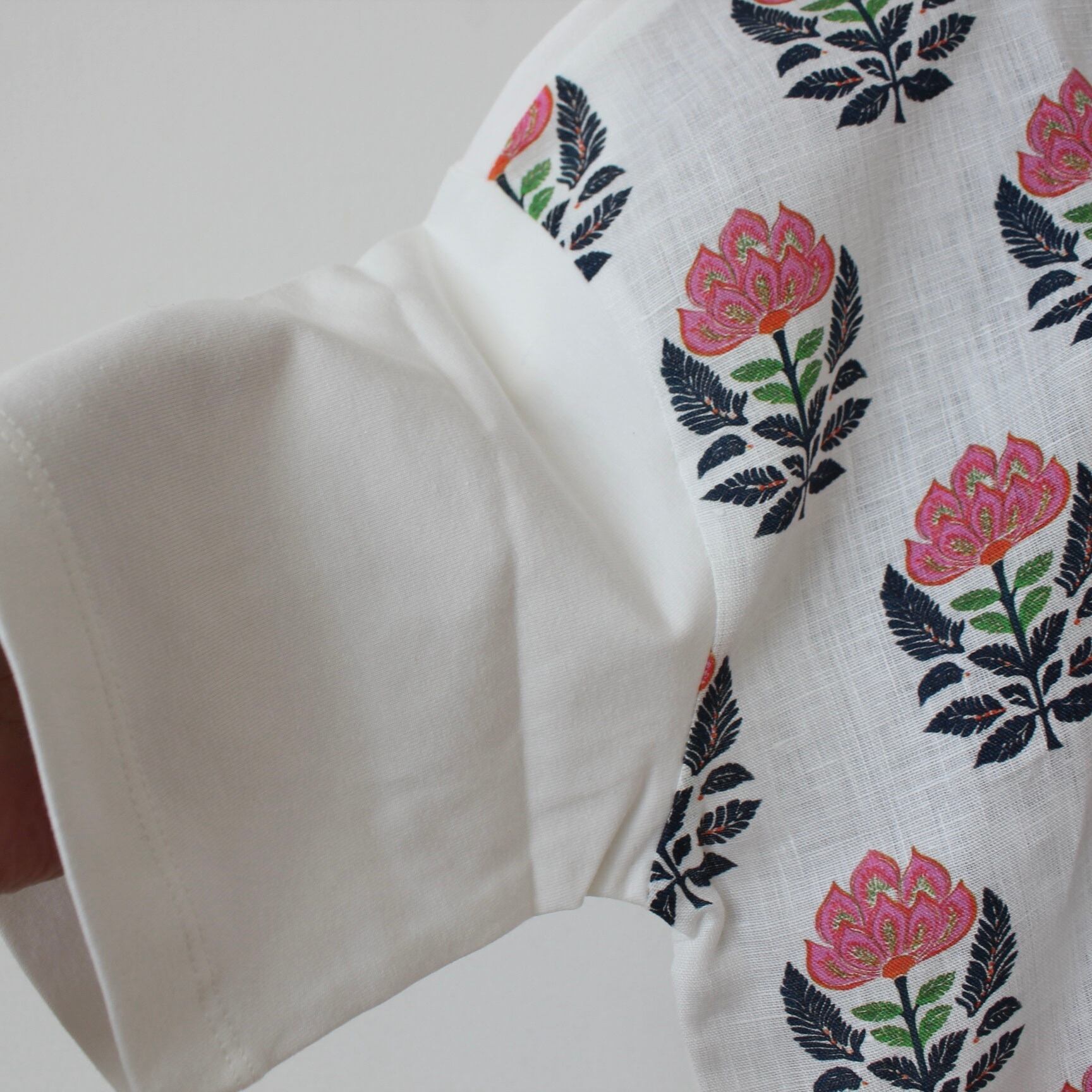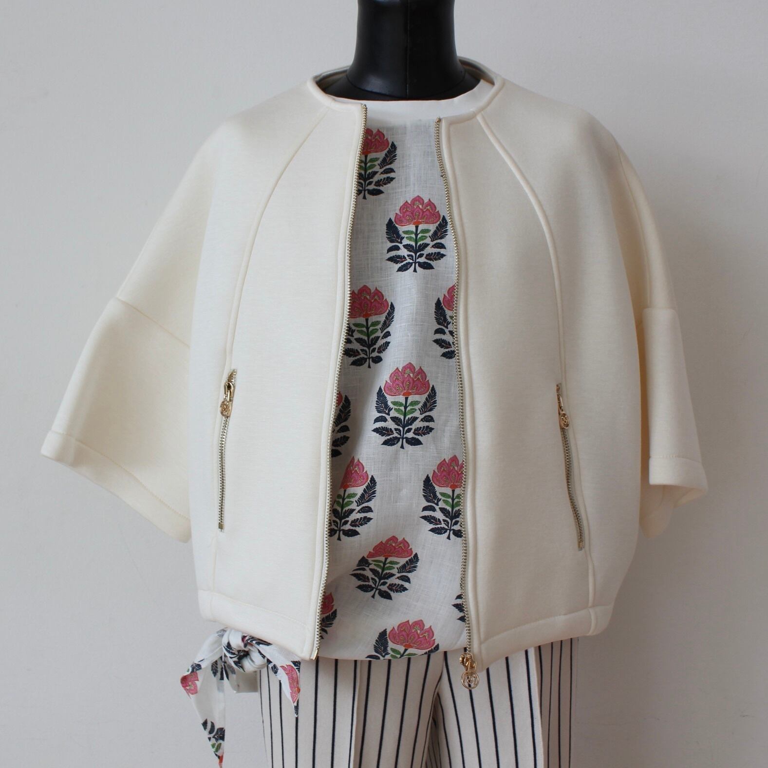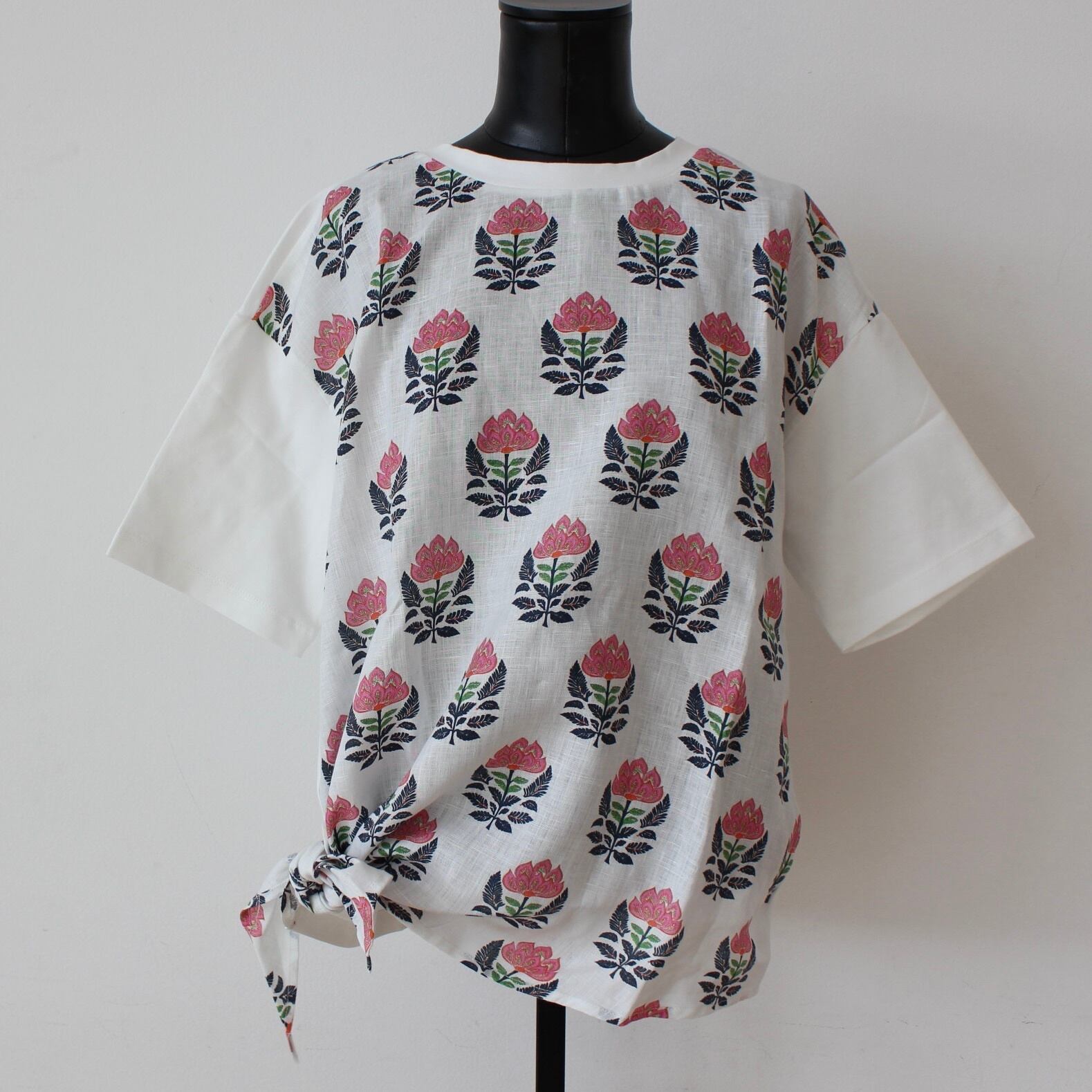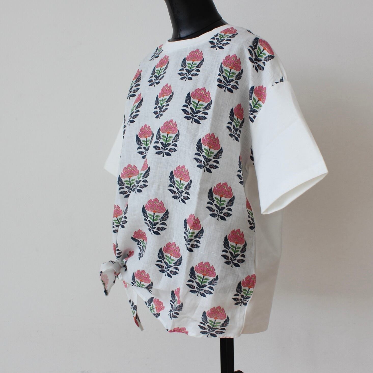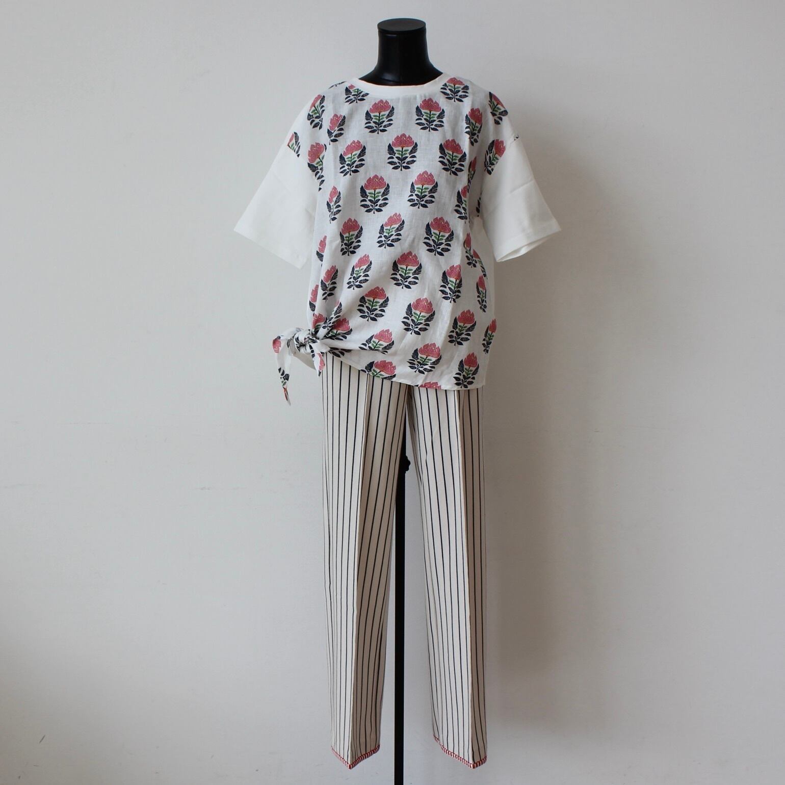 VILAGALLO リネンフラワー柄✖️カットソー切り替えプルオーバーTシャツ SPAIN: VIL33447 ¥26,000+tax
