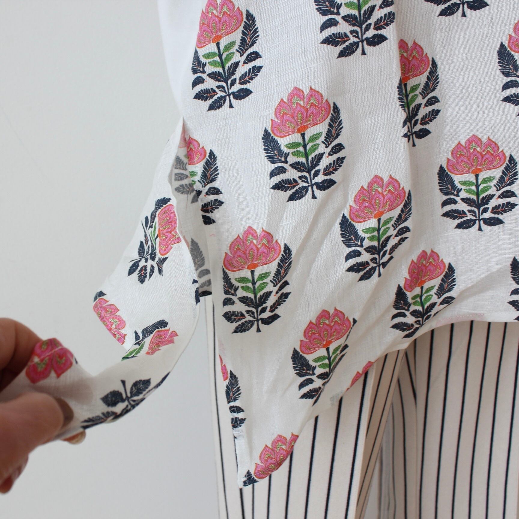 **VILAGALLO リネンフラワー柄✖️カットソー切り替えプルオーバーTシャツは、鮮やかで可愛いフラワー柄とカットソーの絶妙な切り替えが特徴的な、スペイン製のアイテムです!リネン素材を使用しているため、通気性が良くさらりとした肌触りと、スリーブやバックは動きやすくストレッチ素材で、快適な着心地を実現しています。サイドで結ぶデザインで、ふんわりボディーのラインをホローしてくれ、おしゃれでありながらリラックスしたスタイルを楽しめる一着です♪**