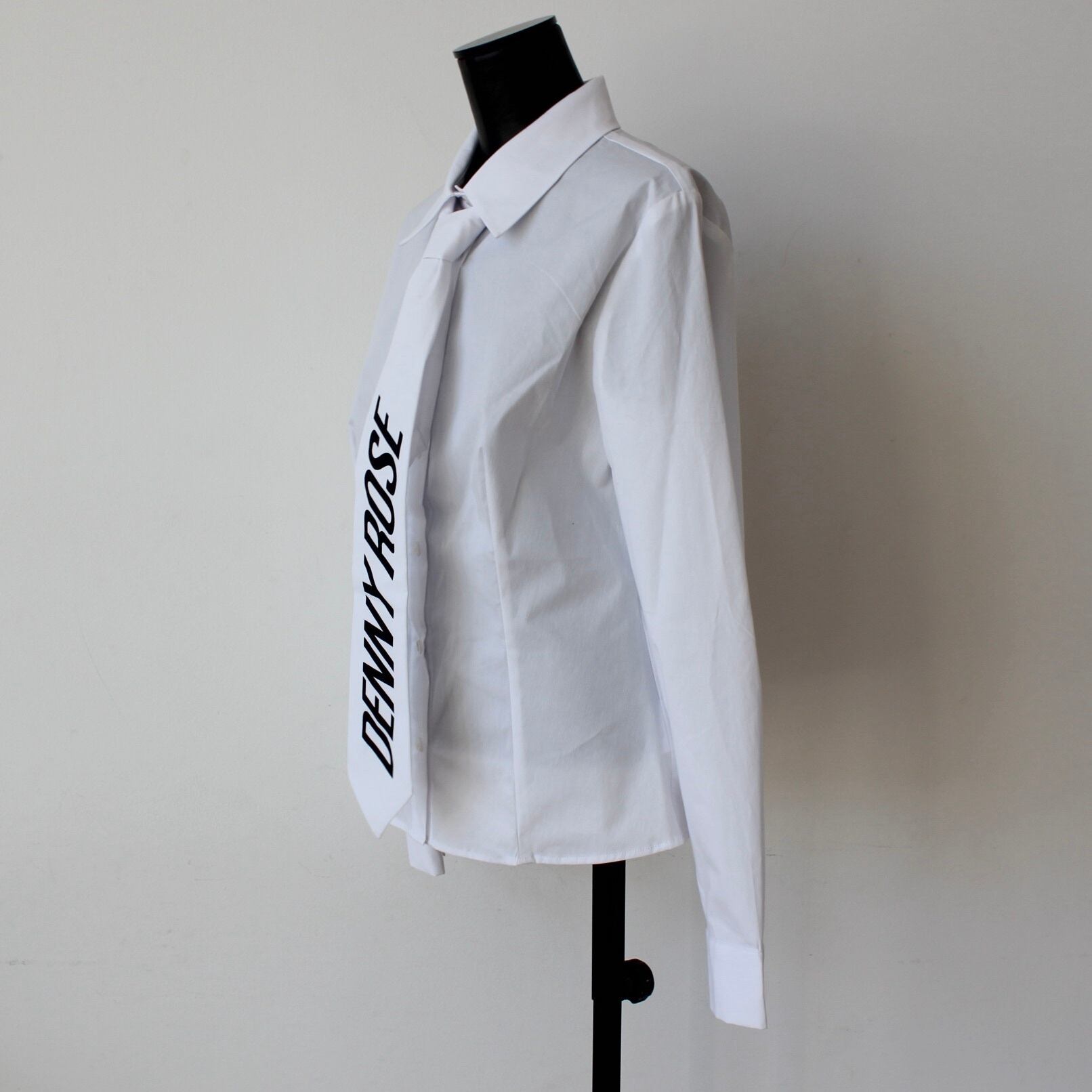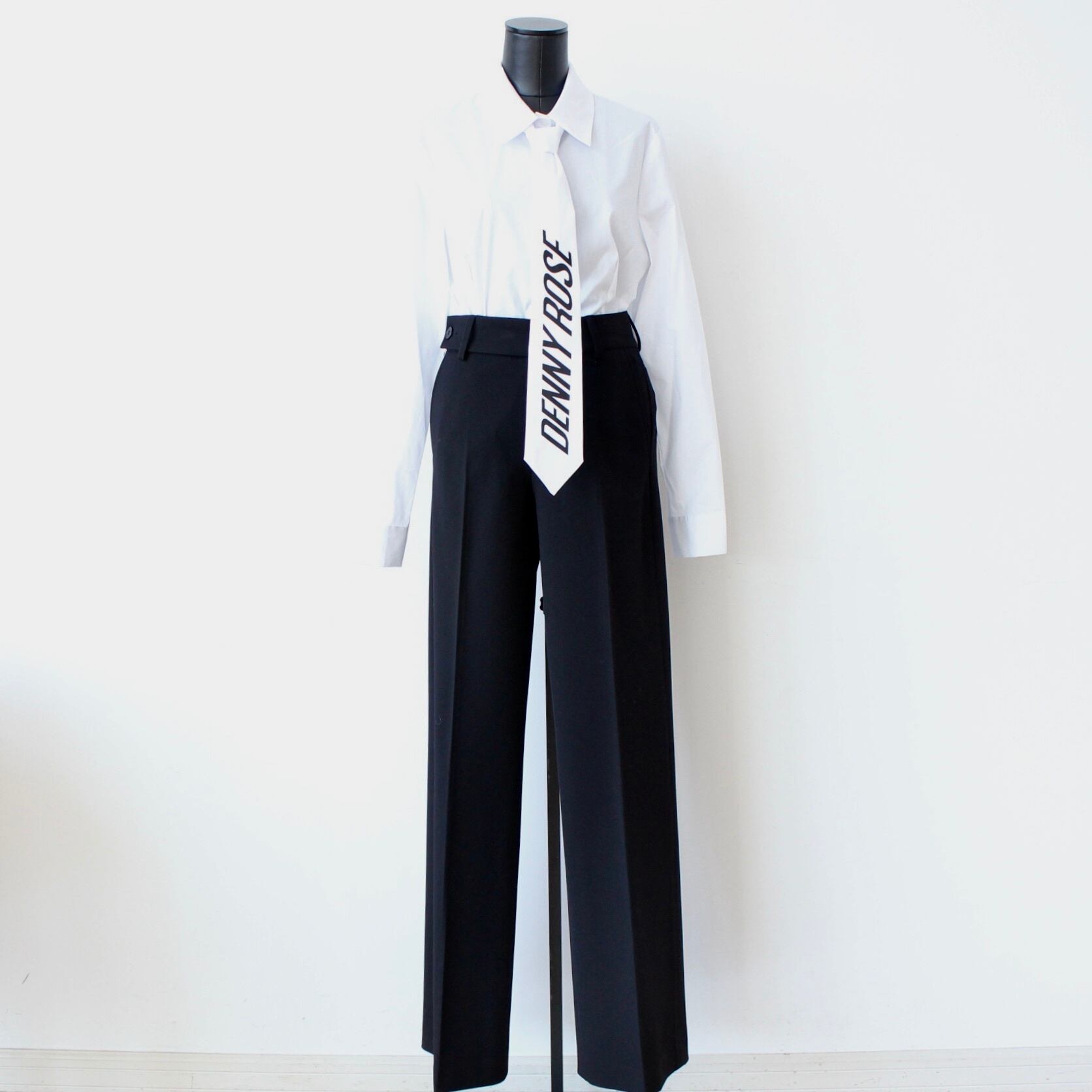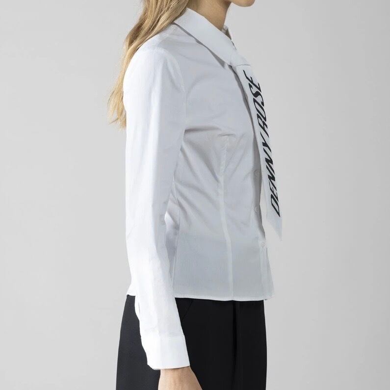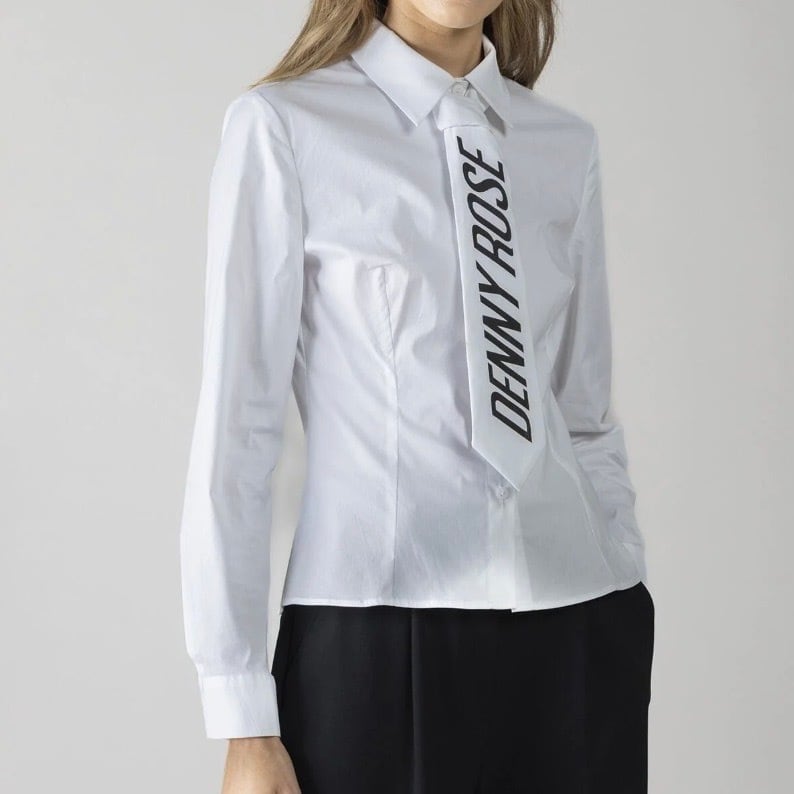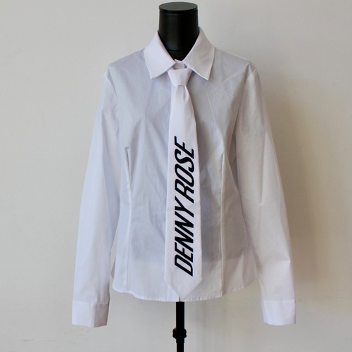 DENNY ROSE ストレッチコットンロゴ入りタイ付ホワイトシャツ ITALY:611DD45008 ¥28,000+tax
