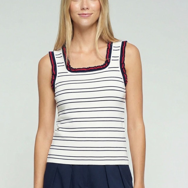 VILAGALLO オフホワイトボーダートリコロールトリミングサマーニットカキャミソール SPAIN:VIL33481¥18.000+tax https://atelier78.fashionstore.jp/items/139106945