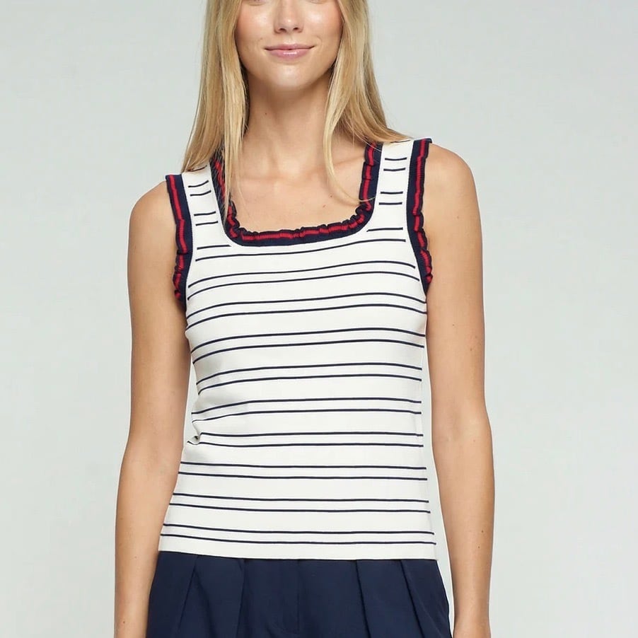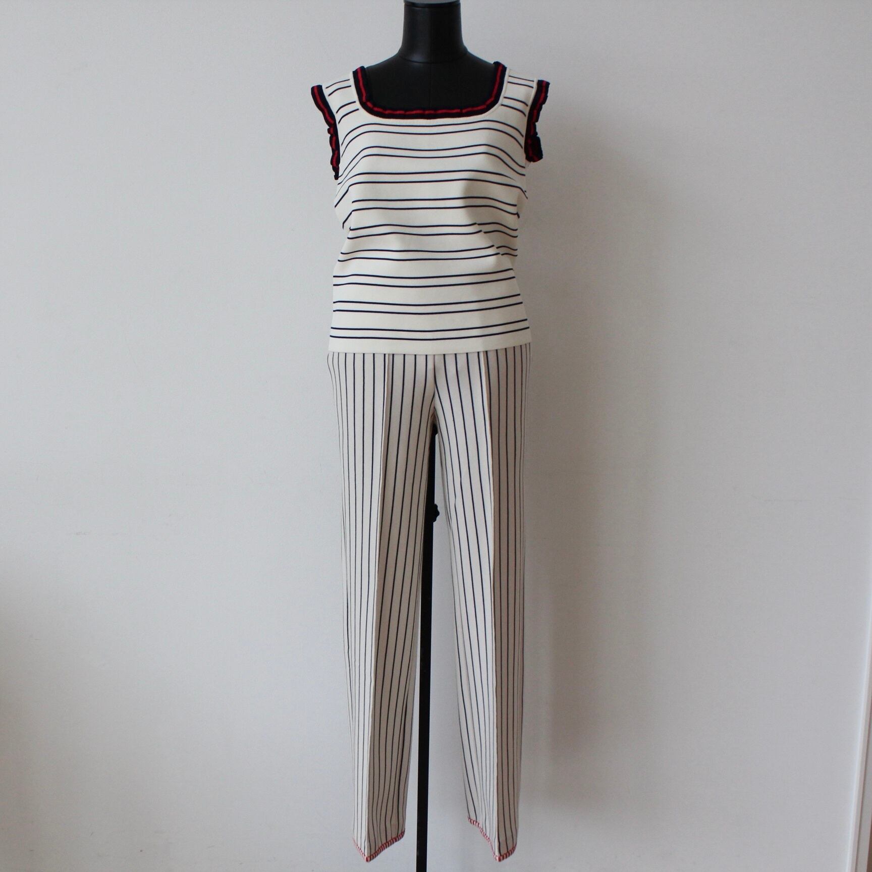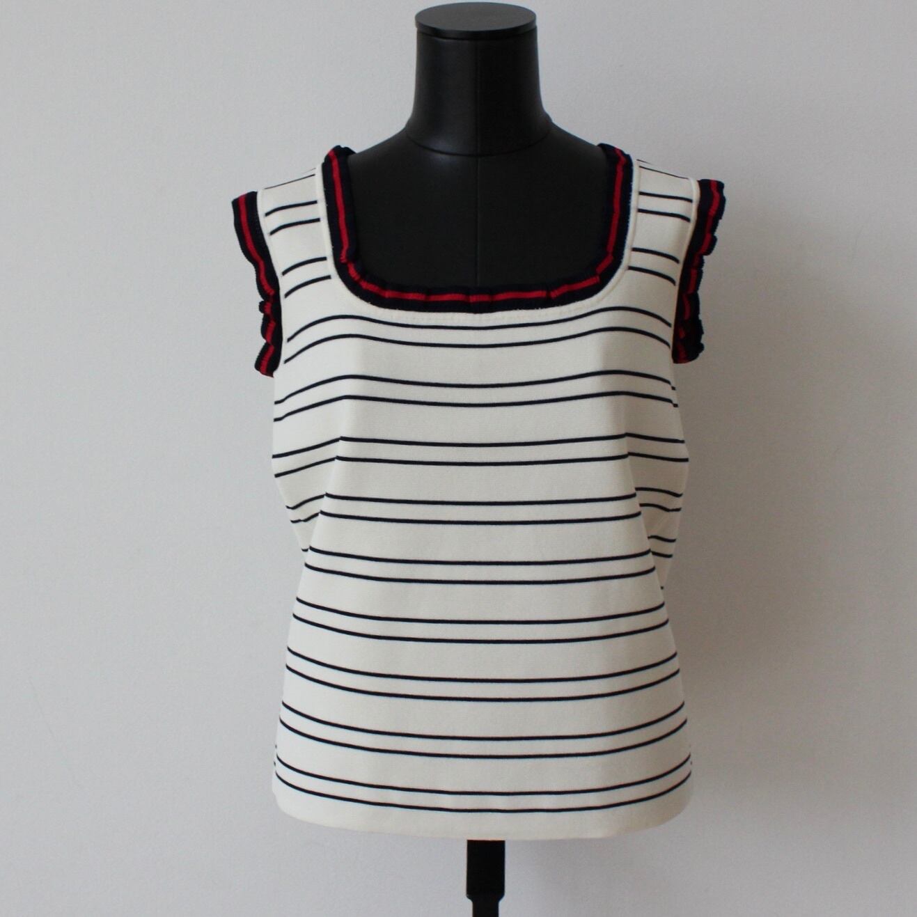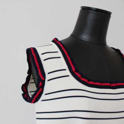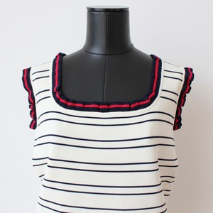 VILAGALLO オフホワイトトリコロールトリミングサマーニットキャミソール SPAIN:VIL33481 ¥18,000+tax