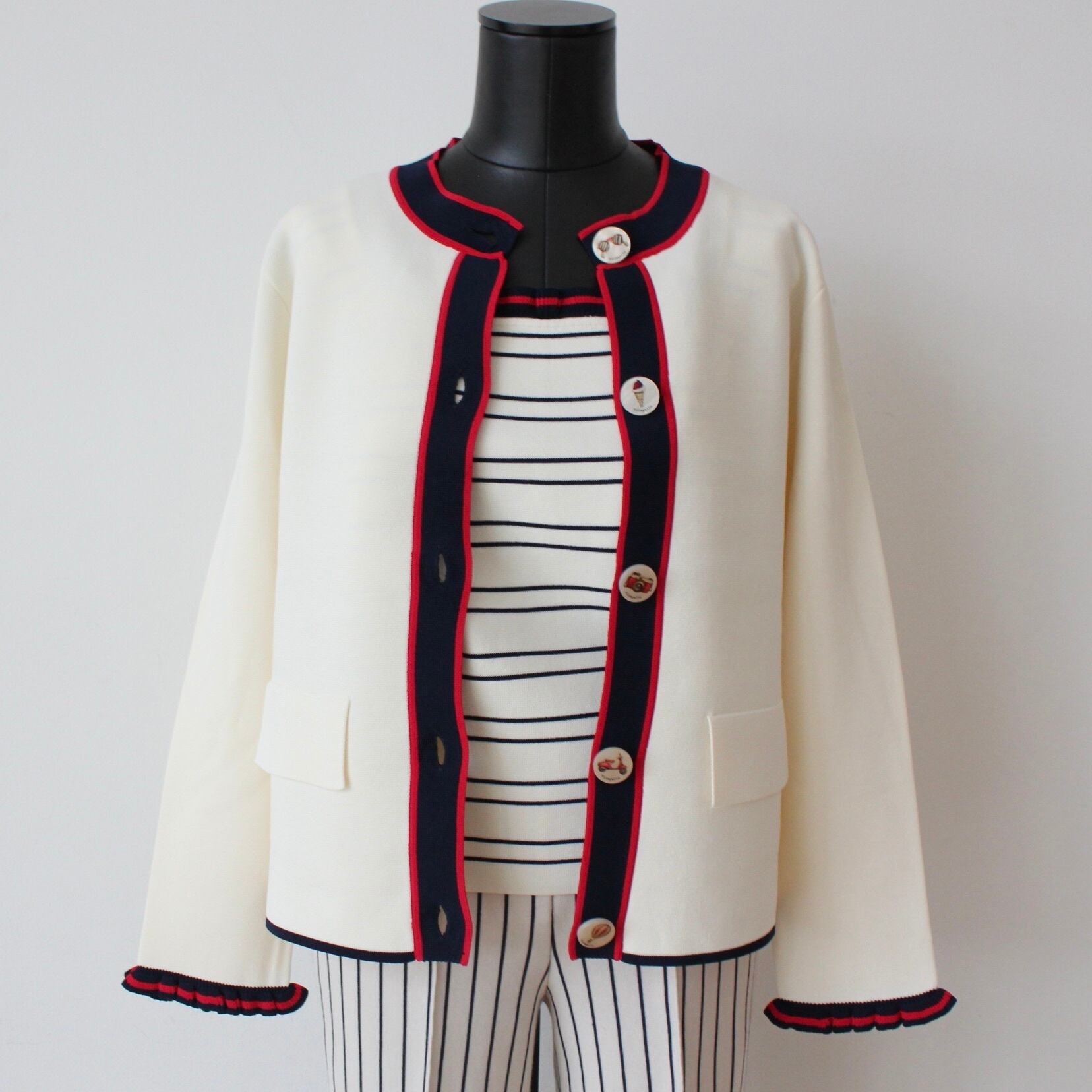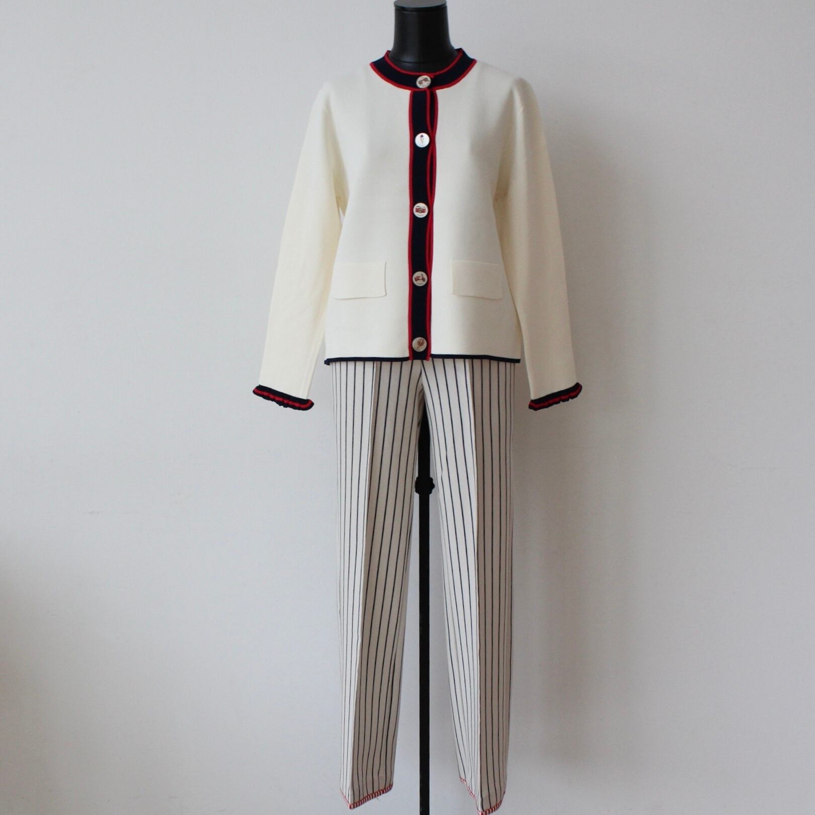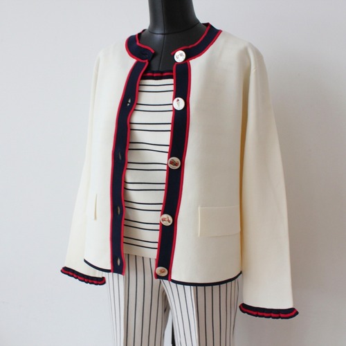 VILAGALLO オフホワイトトリコロールトリミングサマーニットカーディガンジャケット SPAIN:VIL33478¥28.000+tax https://atelier78.fashionstore.jp/items/139006701