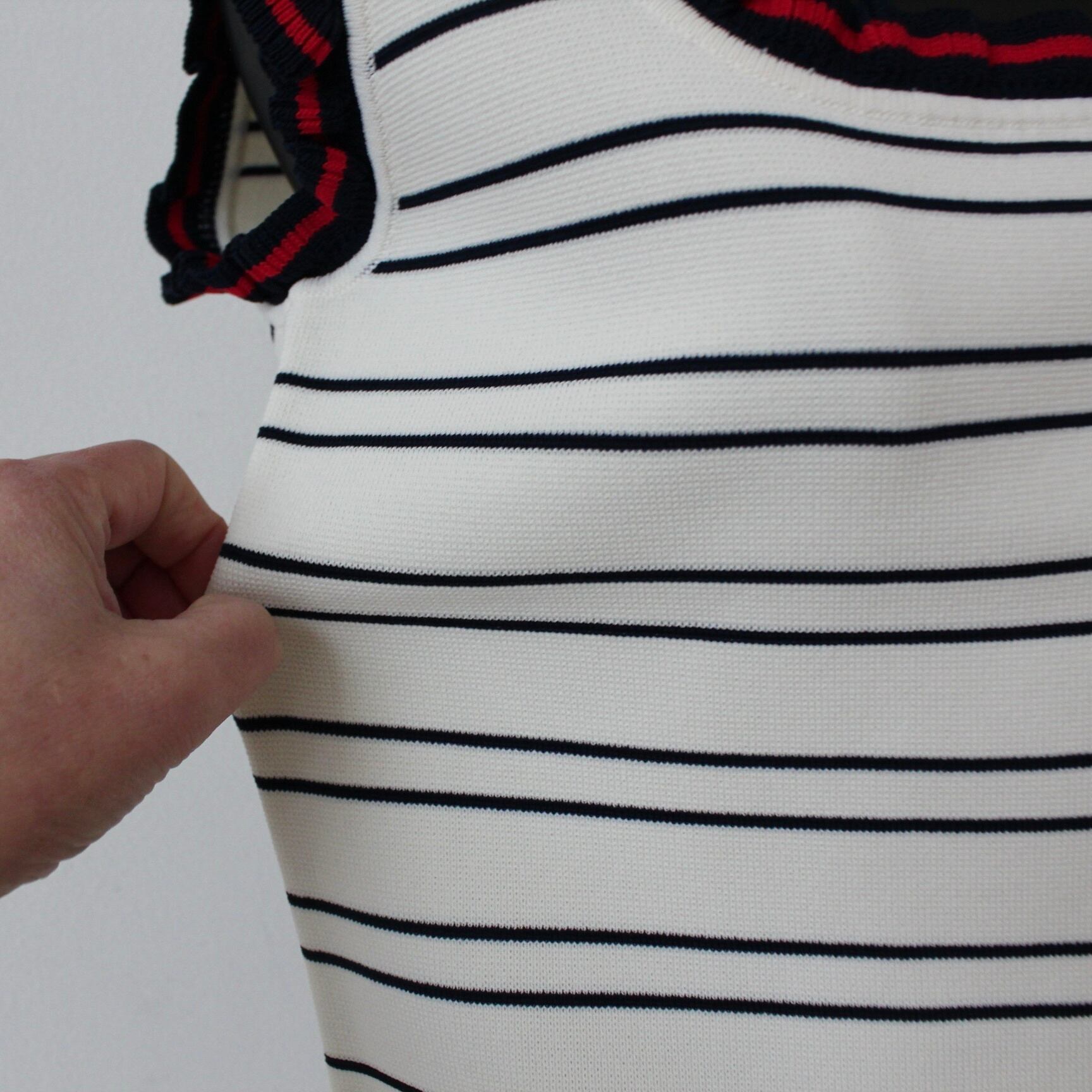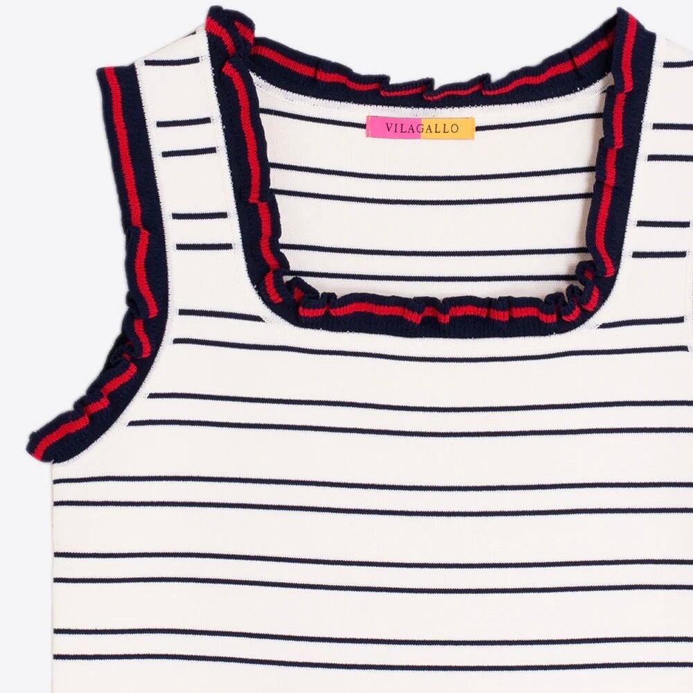 **VILAGALLO オフホワイトトリコロールトリミングサマーニットキャミソールは、スペインからのおしゃれなアイテムです!トリコロールの鮮やかなトリミングが魅力的で、コーディネートの主役として大活躍する一着です♪**