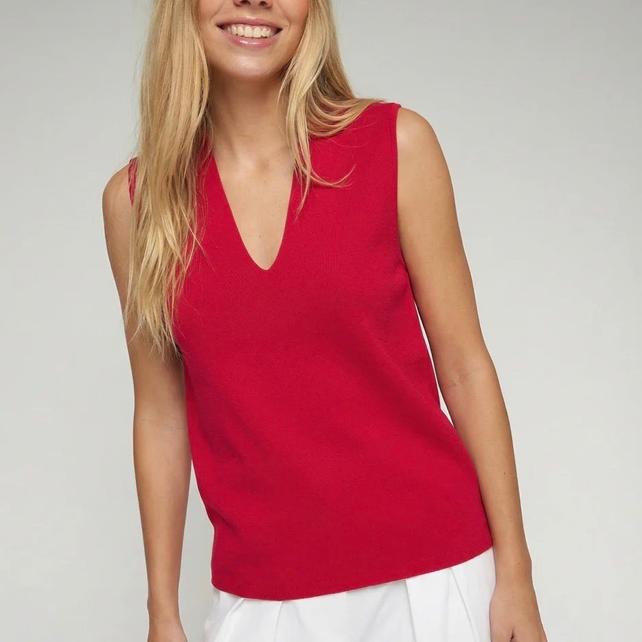 VILAGALLO レッドVカットノースリーブサマーニット SPAIN:VIL33487 ¥18,000+tax