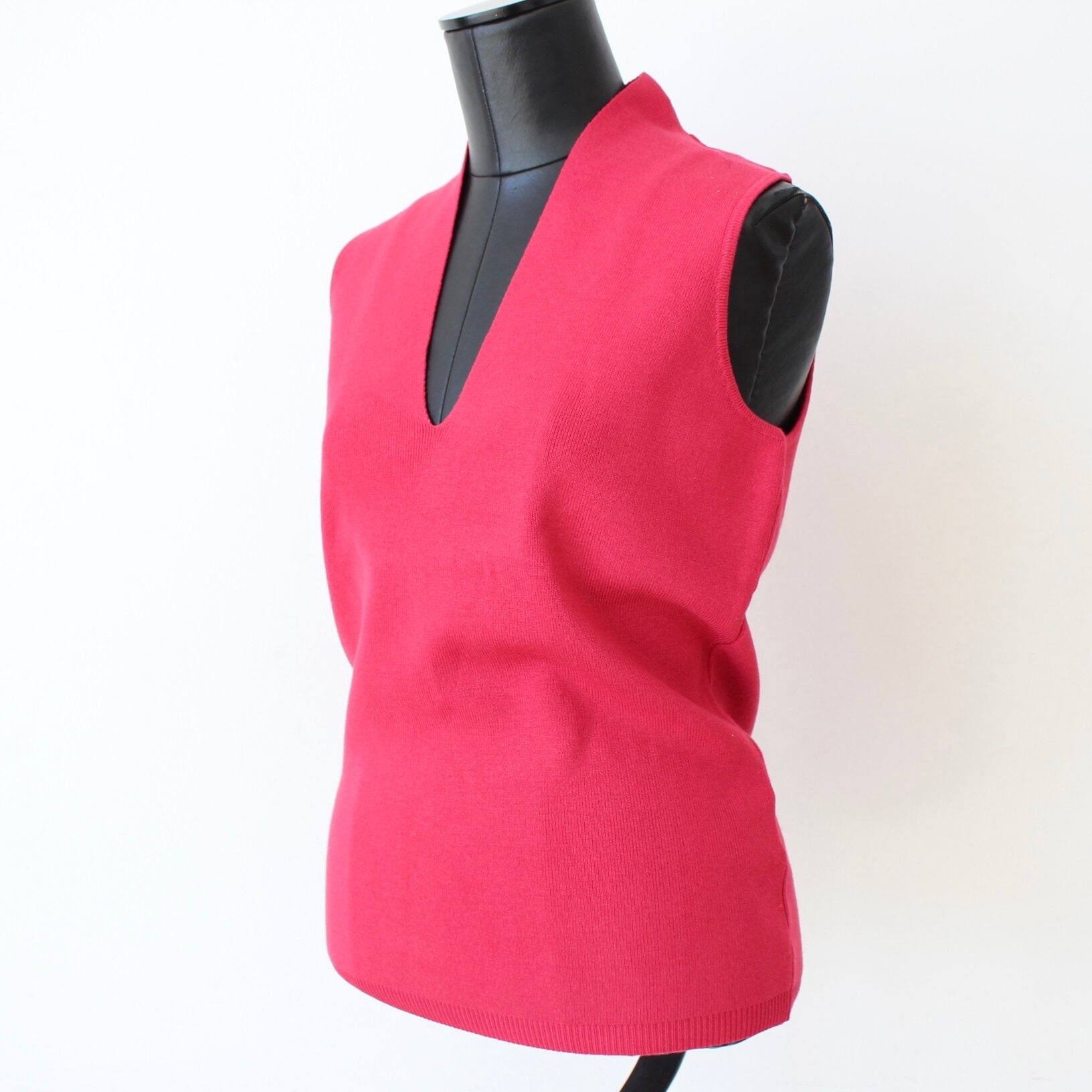 **VILAGALLO レッドVカットノースリーブサマーニットは、スペインから持ち帰ったコーデのポイントにお役立ちするファッションアイテムです!鮮やかなレッドカラーがポイントで、シンプルながらも洗練された印象を与えます♪小さめの Vカットのデザインは顔周りをスッキリと見せ、バストのラインも気にならず、デコルテをさり気なく見せ、バックネックの立ち上がりが、UV効果あるデザインで、スッキリノースリーブのスタイルが夏にぴったりな一着です。**