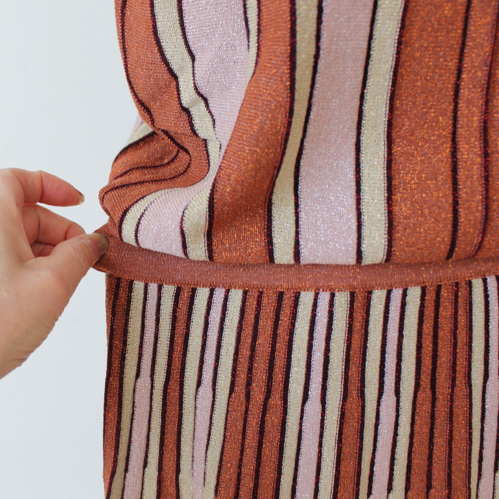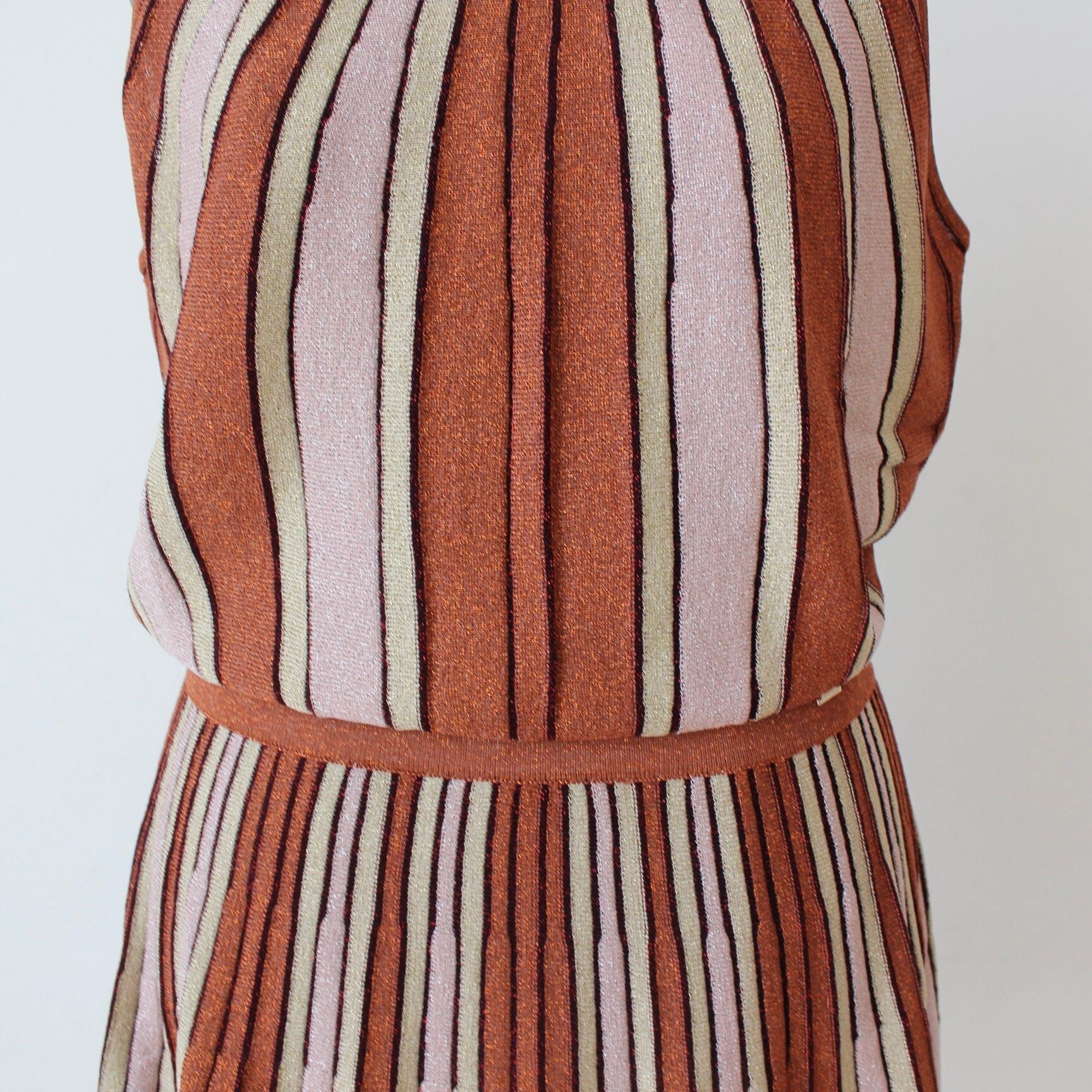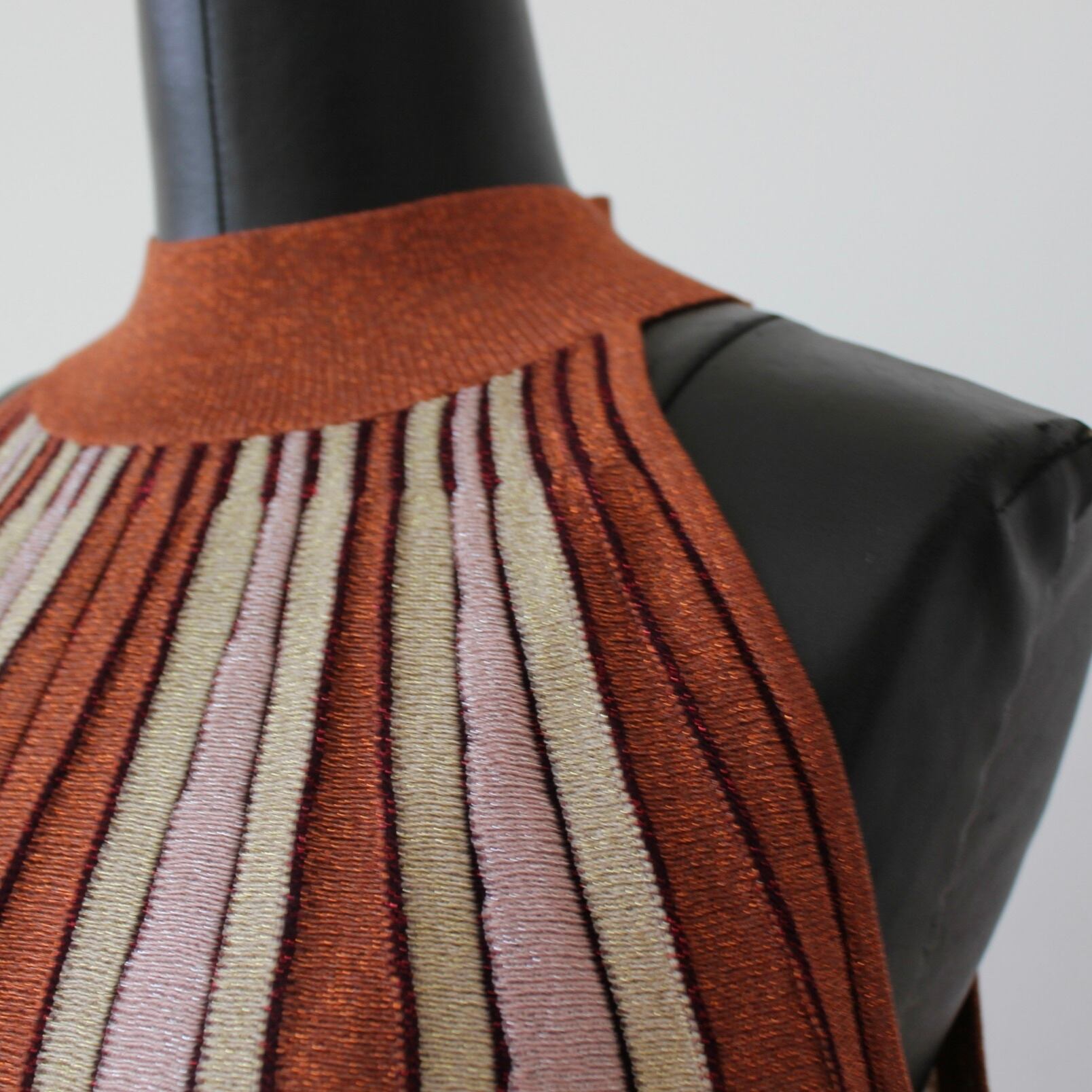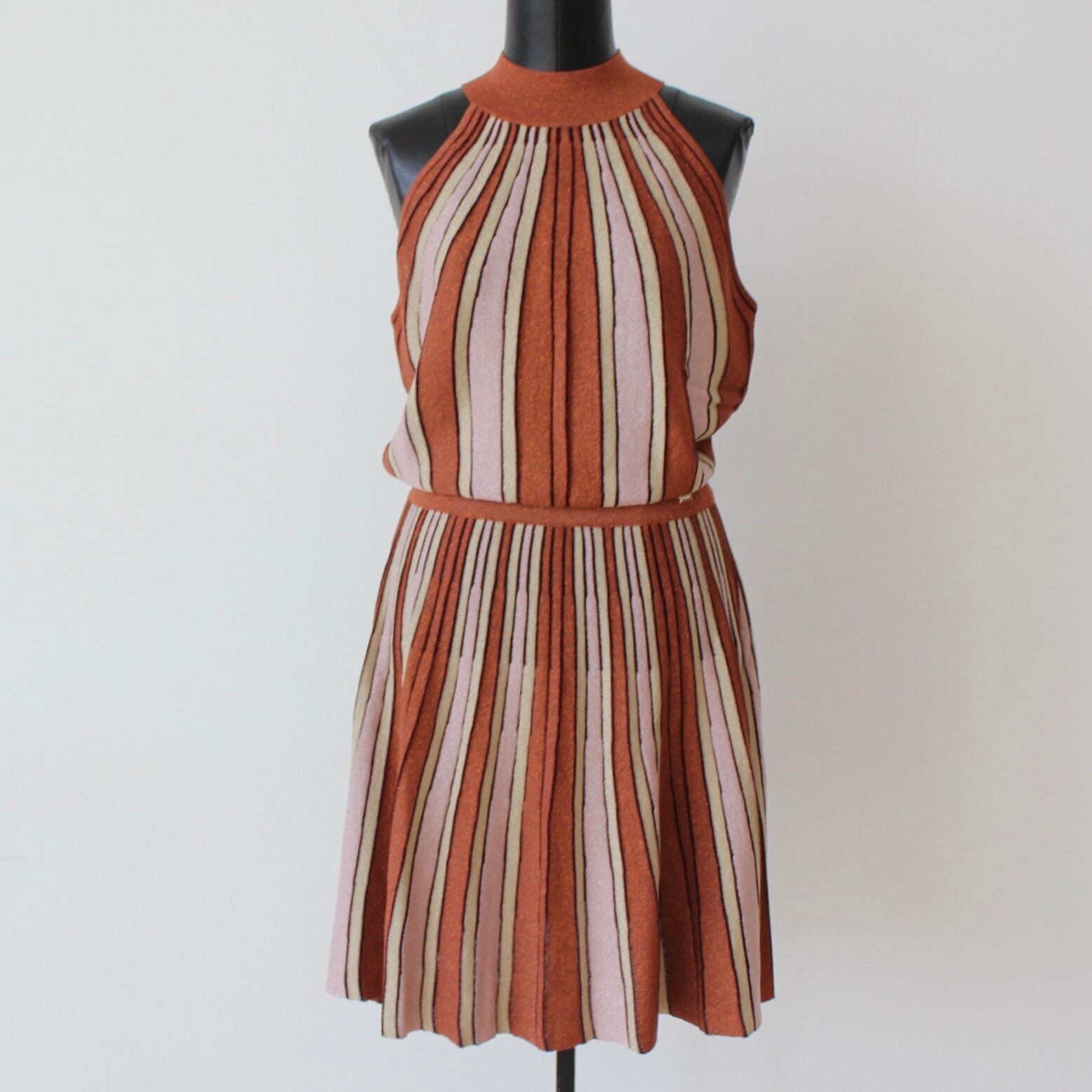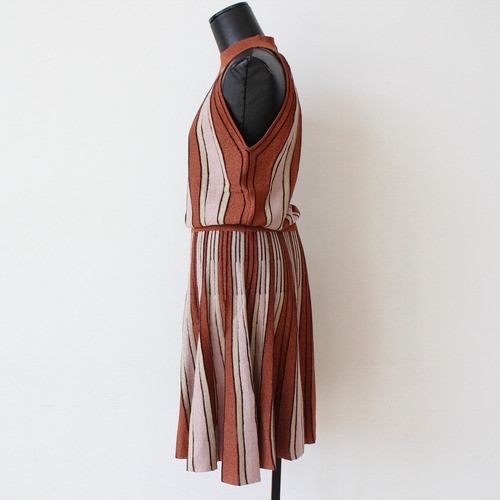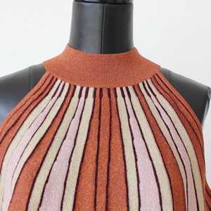 GAUDI ブラウンラメ入りサマーニットストライプホルターネックワンピース ITALY:611FD13002 ¥36,000➕tax
