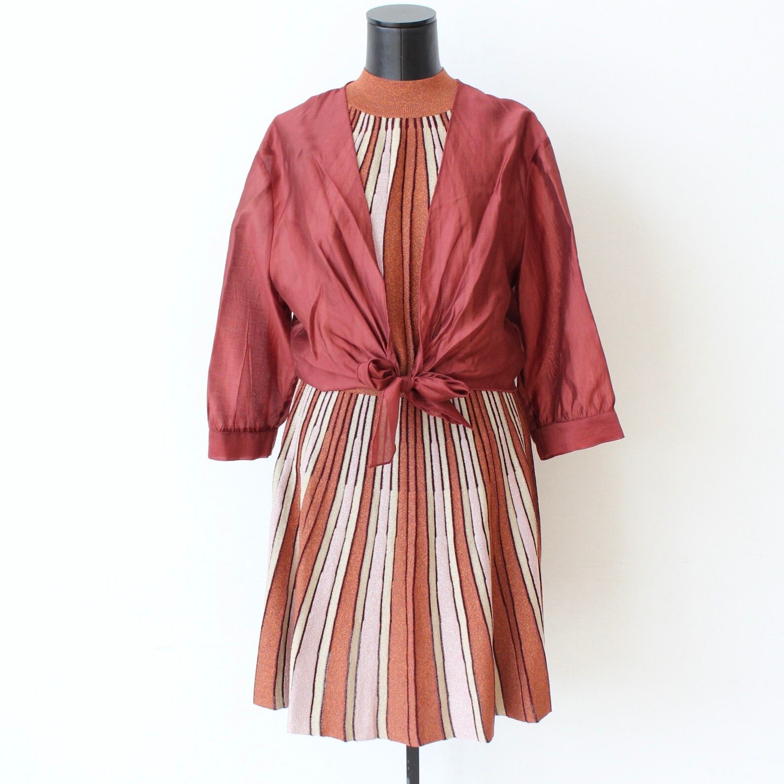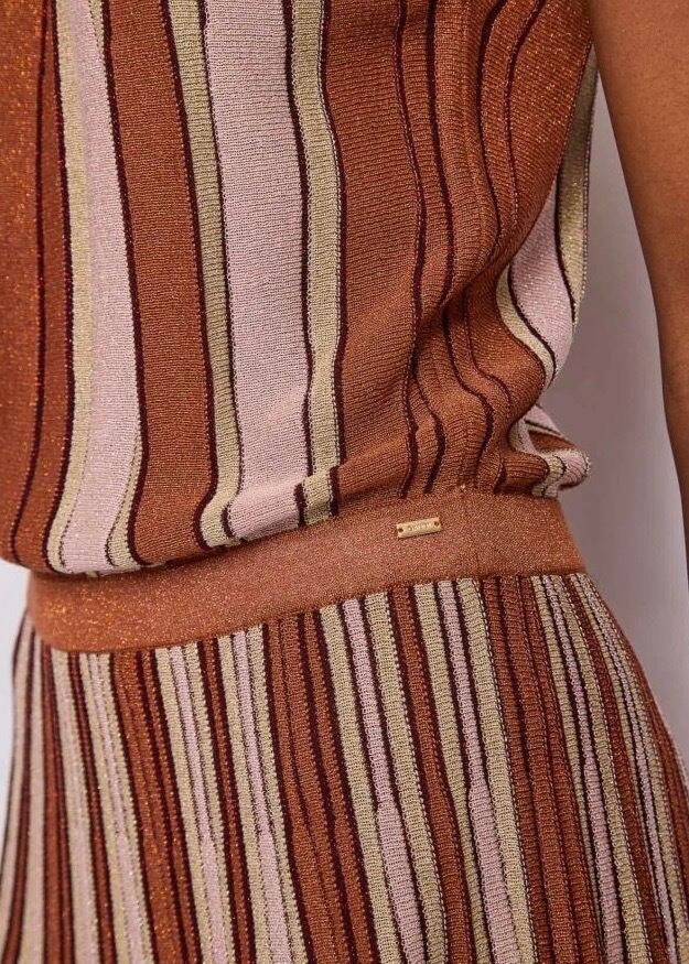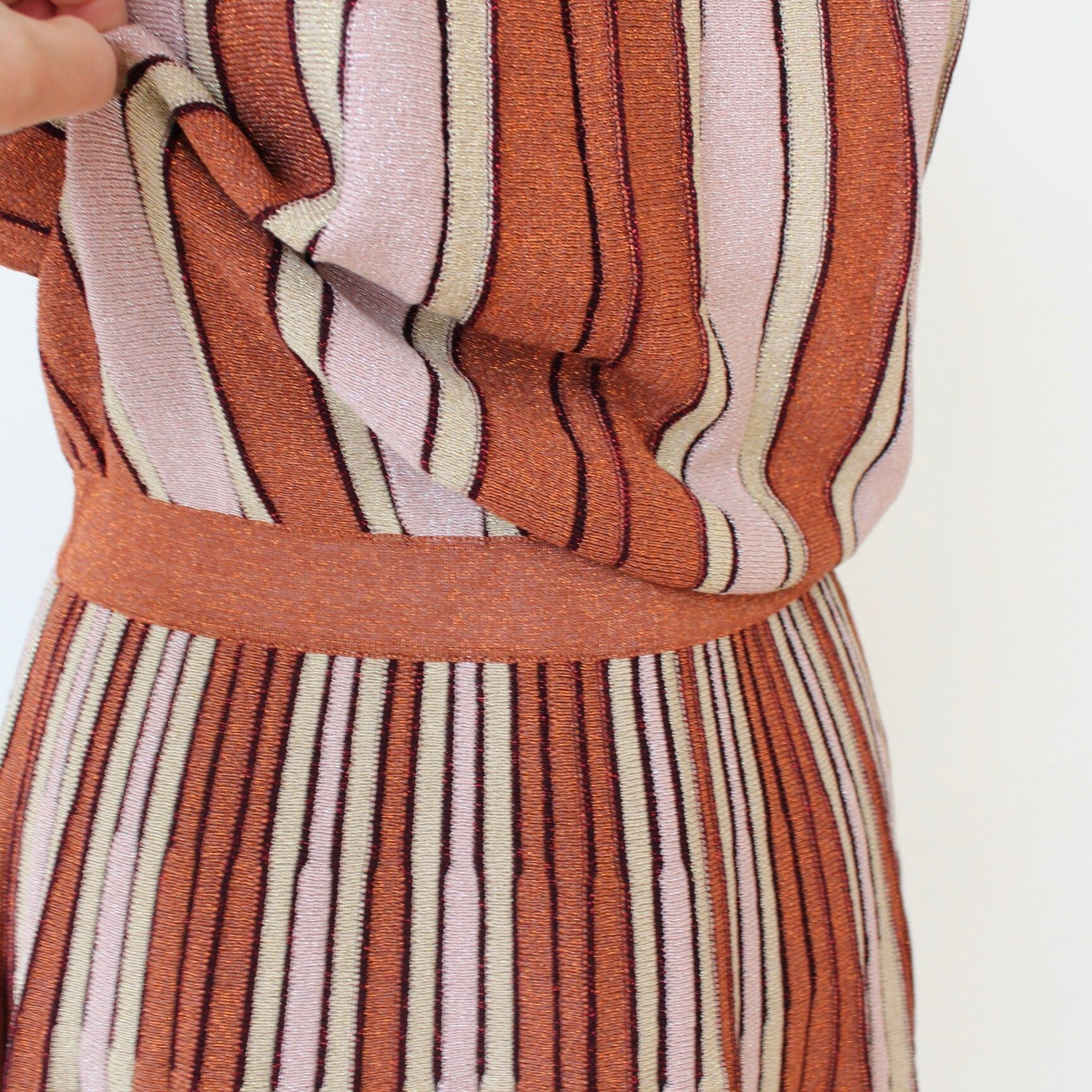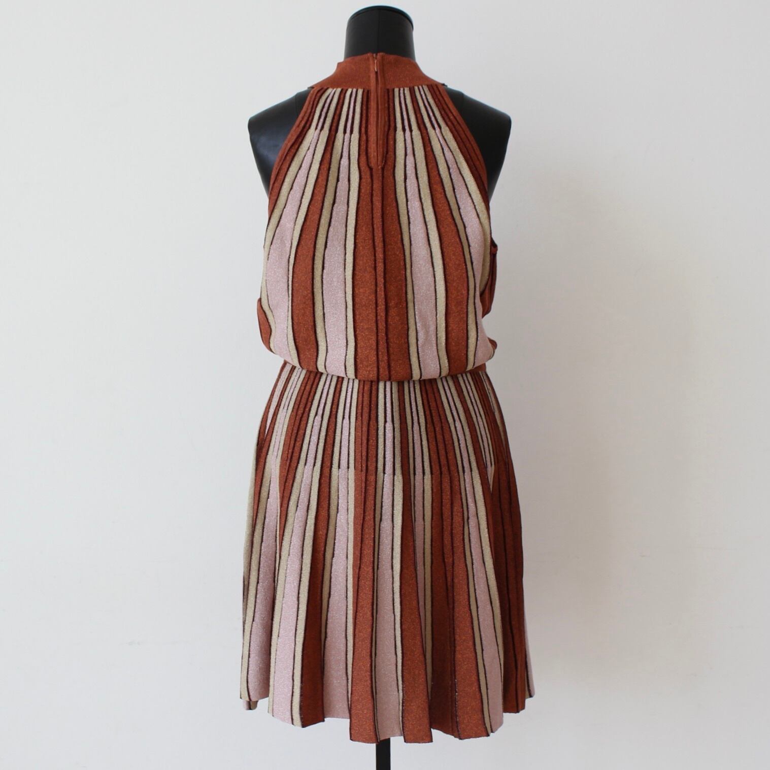 GAUDI ブラウンラメ入りサマーニットストライプホルターネックワンピース ITALY:611FD13002 ¥36,000➕tax