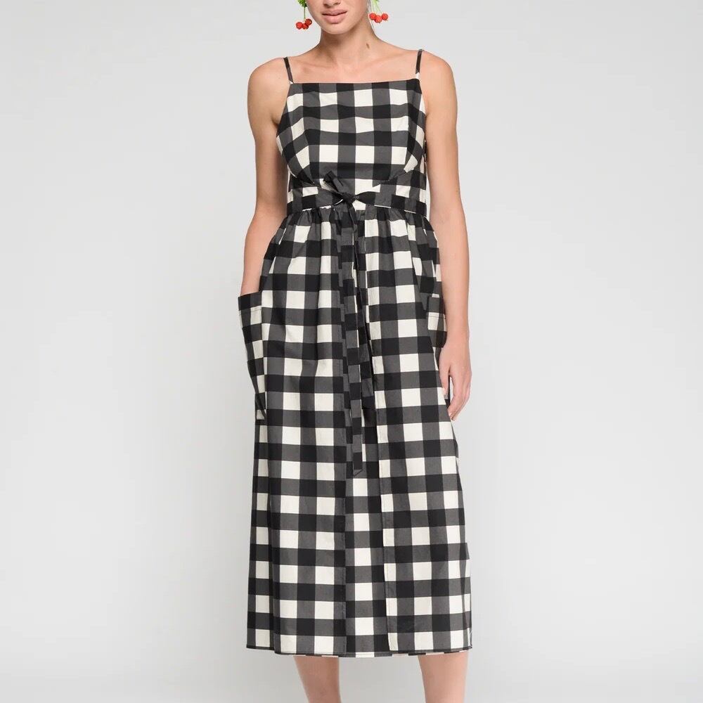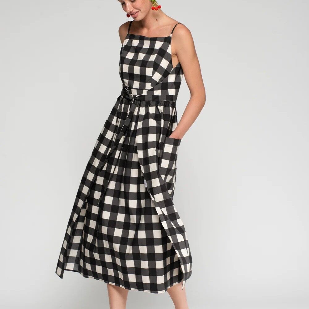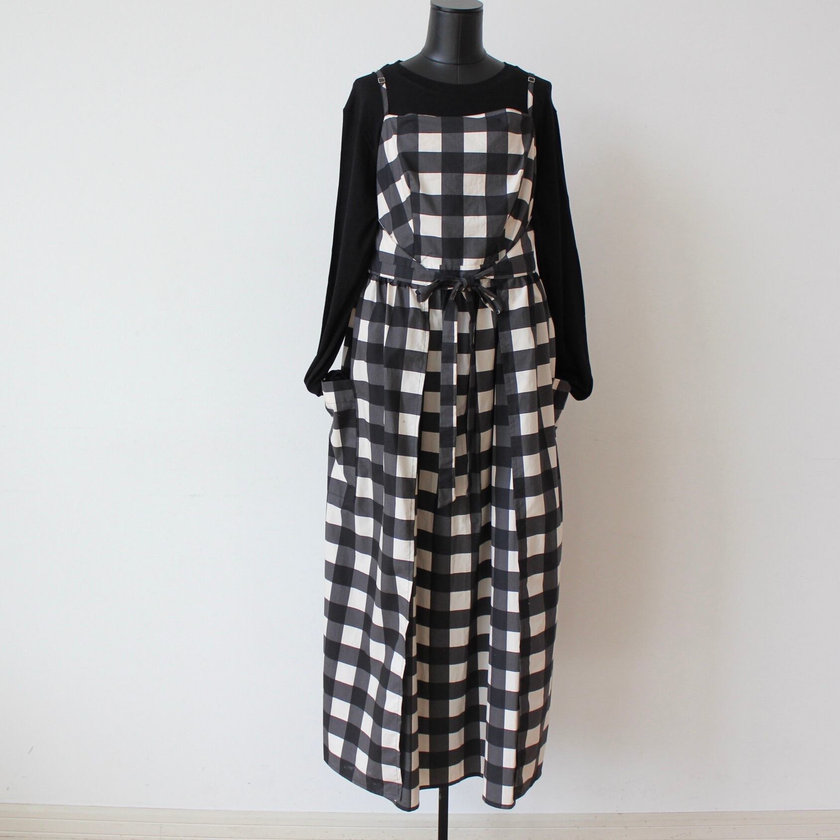 VILAGALLO ブラック✖️ホワイトギンガムチェックエプロンワンピース SPAIN:VIL333381 ¥53,000+tax