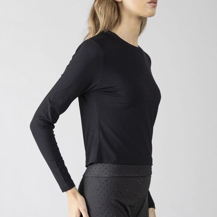 **DENNY ROSE ブラック刺繍ロゴ&バックプリントジャスト丈ロングTシャツは、イタリアの滑らかな素材が心地良い、ロングスリーブTシャツで、カジュアルなデザインながらスタイリッシュなファッションアイテムです!フロントはさりげなく深いブラックに映えるグレーの刺繍ロゴとバックのプリントデザインが、シンプルながらも個性的な印象を与える一着です♪ ジャスト丈のシルエットがスタイルをスマートに見せてくれ、ウエスト周りをスッキリ、カジュアルからスポーティーまで幅広いスタイリングに対応します。**