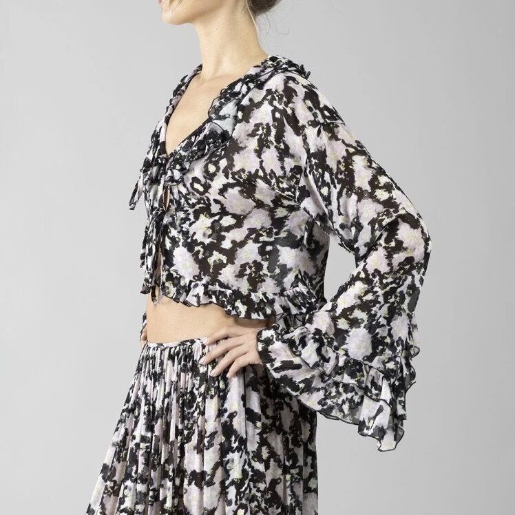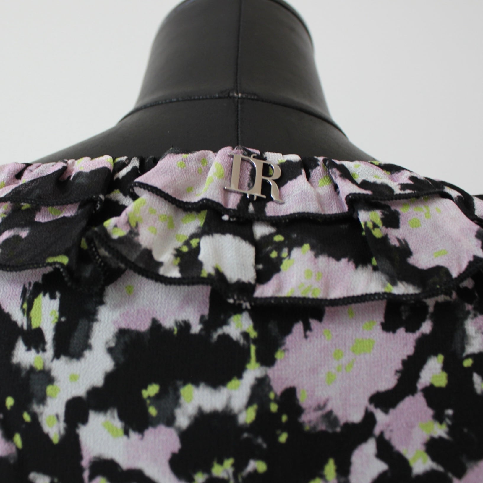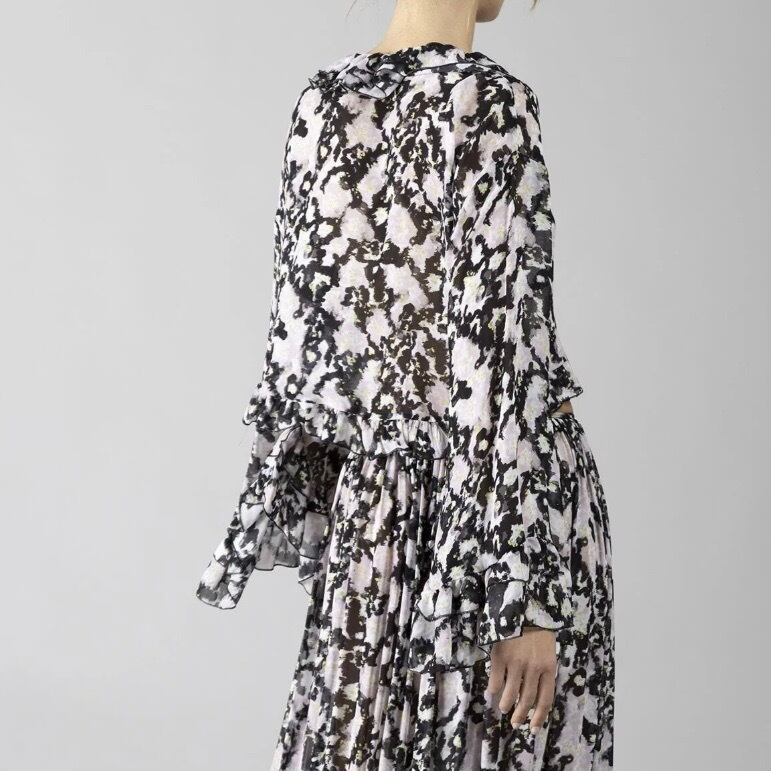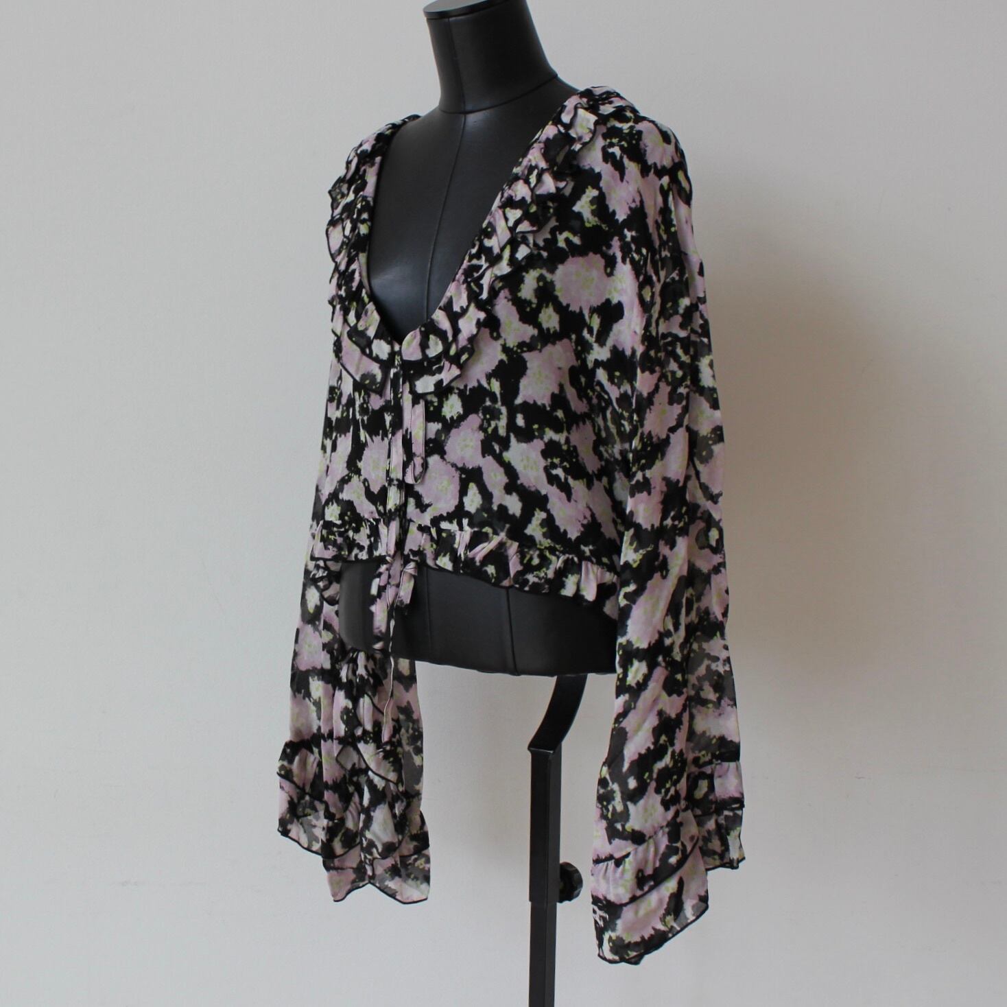 DENNY ROSE ブラックシフォンピンク✖️グリーンフラワーフリルブラウス ITALY:611DD45026 ¥29,000+tax