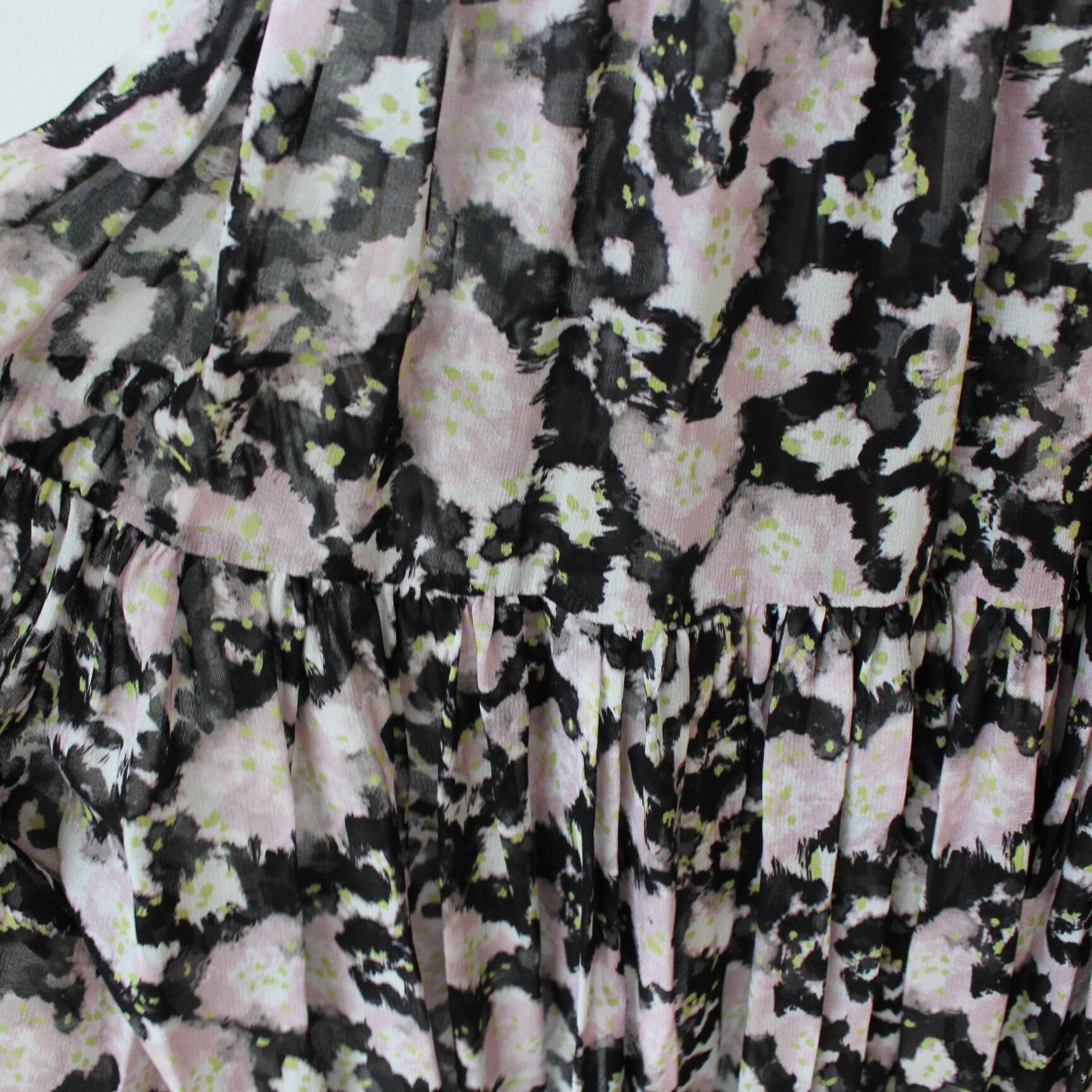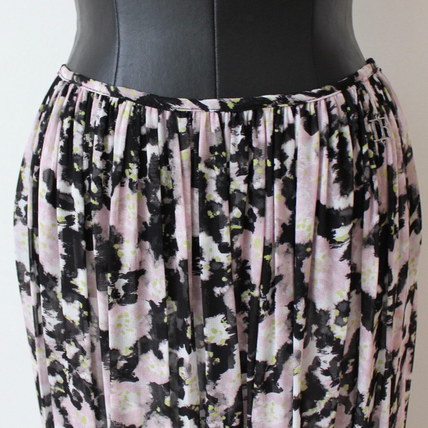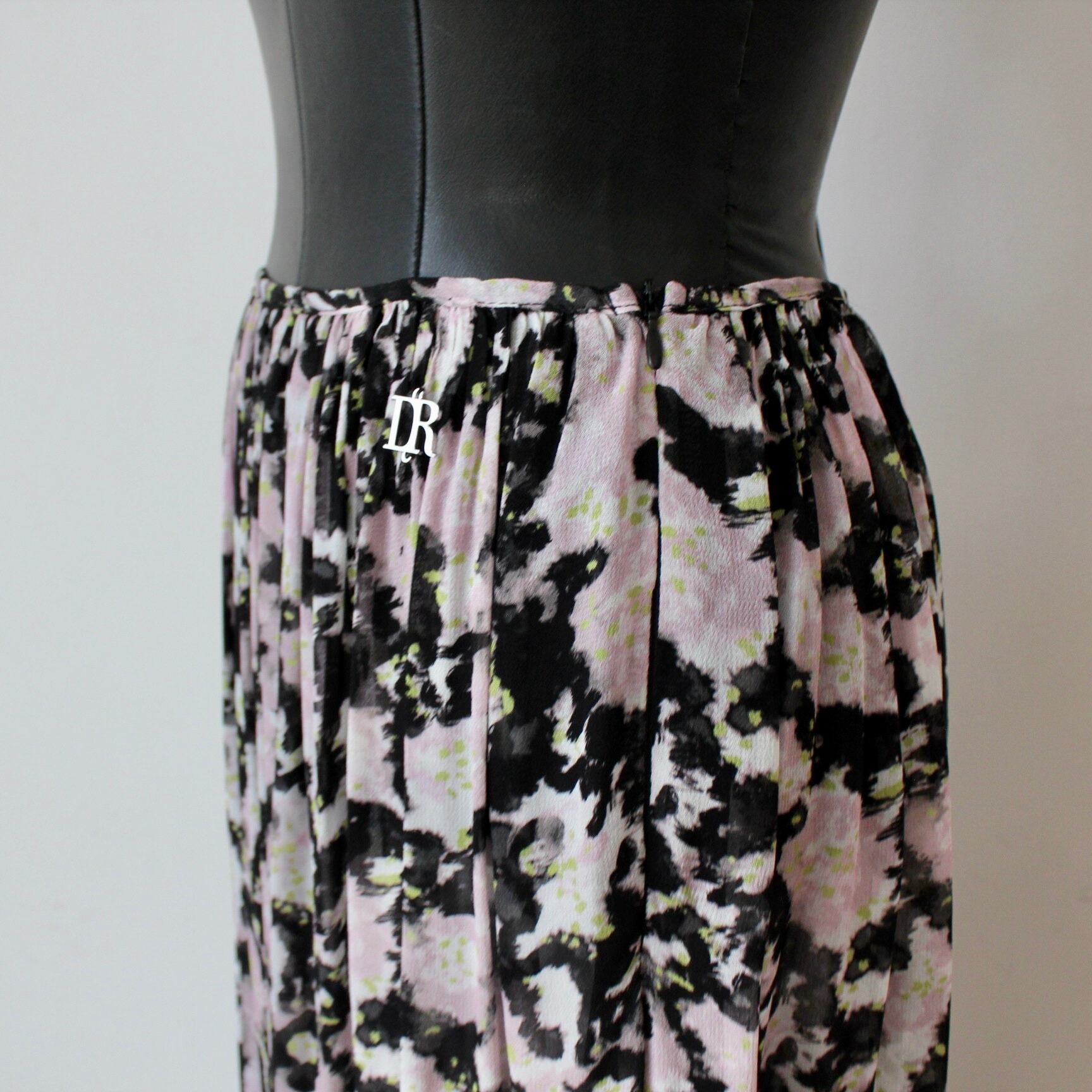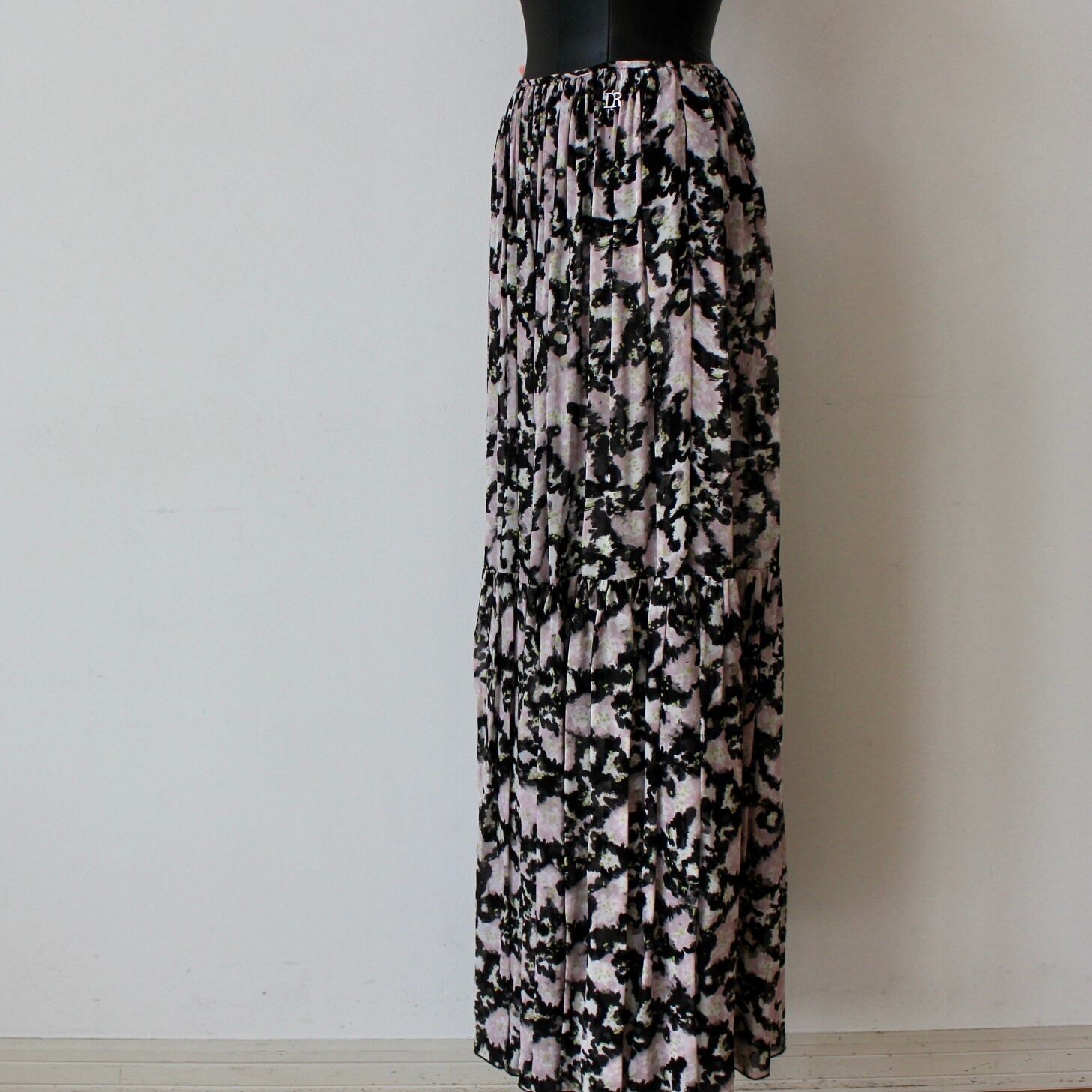 DENNY ROSE ブラックシフォンピンク✖️グリーンフラワーマキシティアードスカート ITALY:611DD75011 ¥43,000+tax