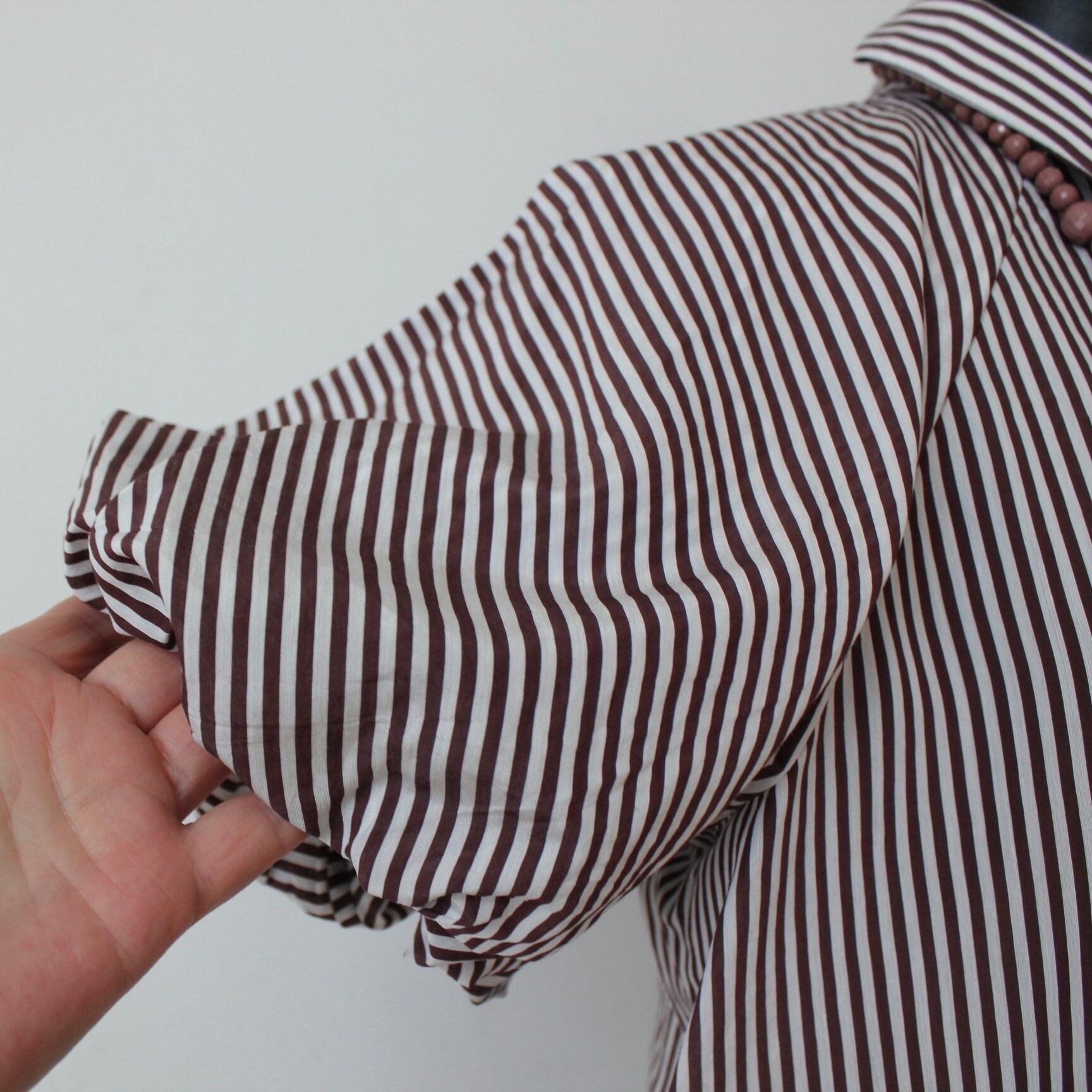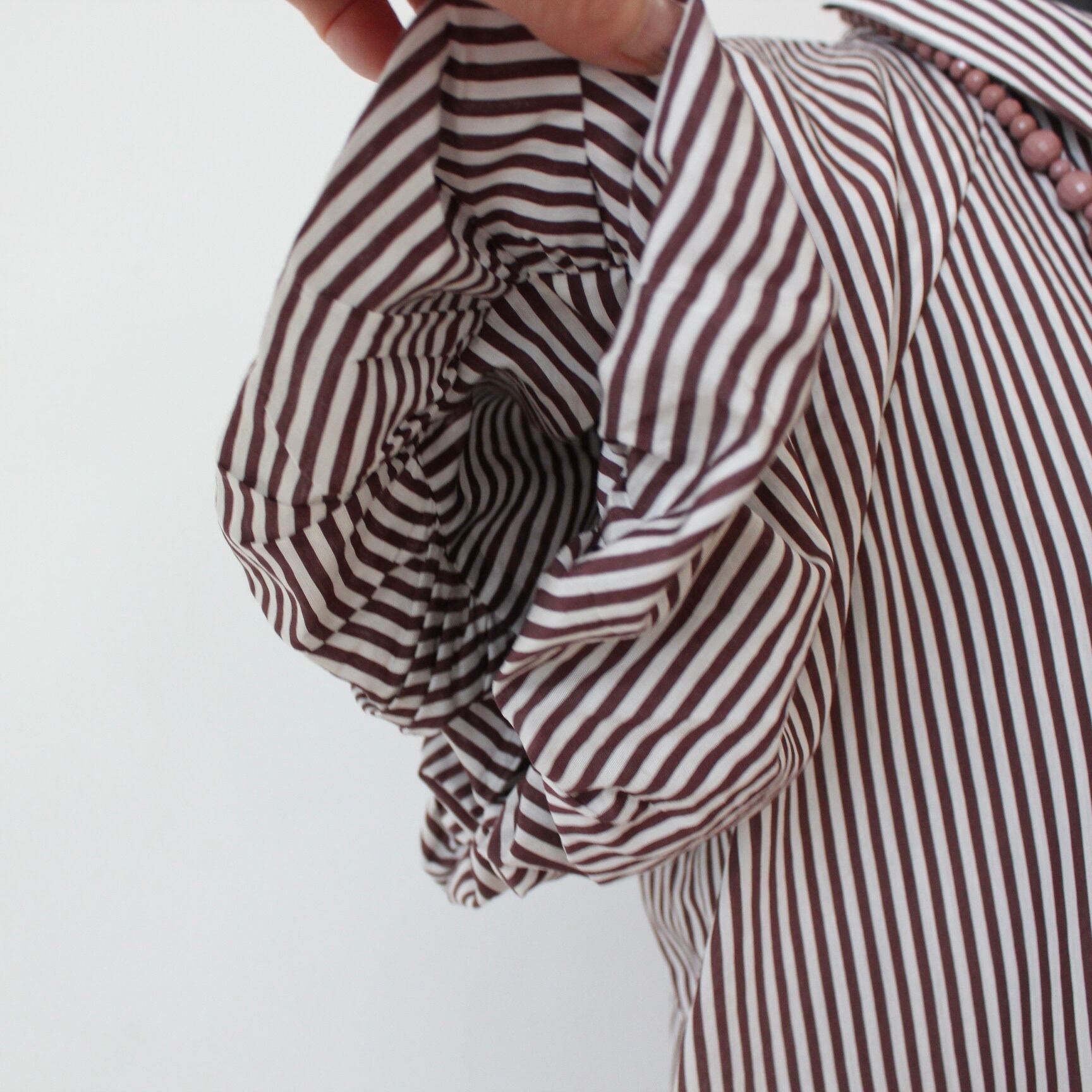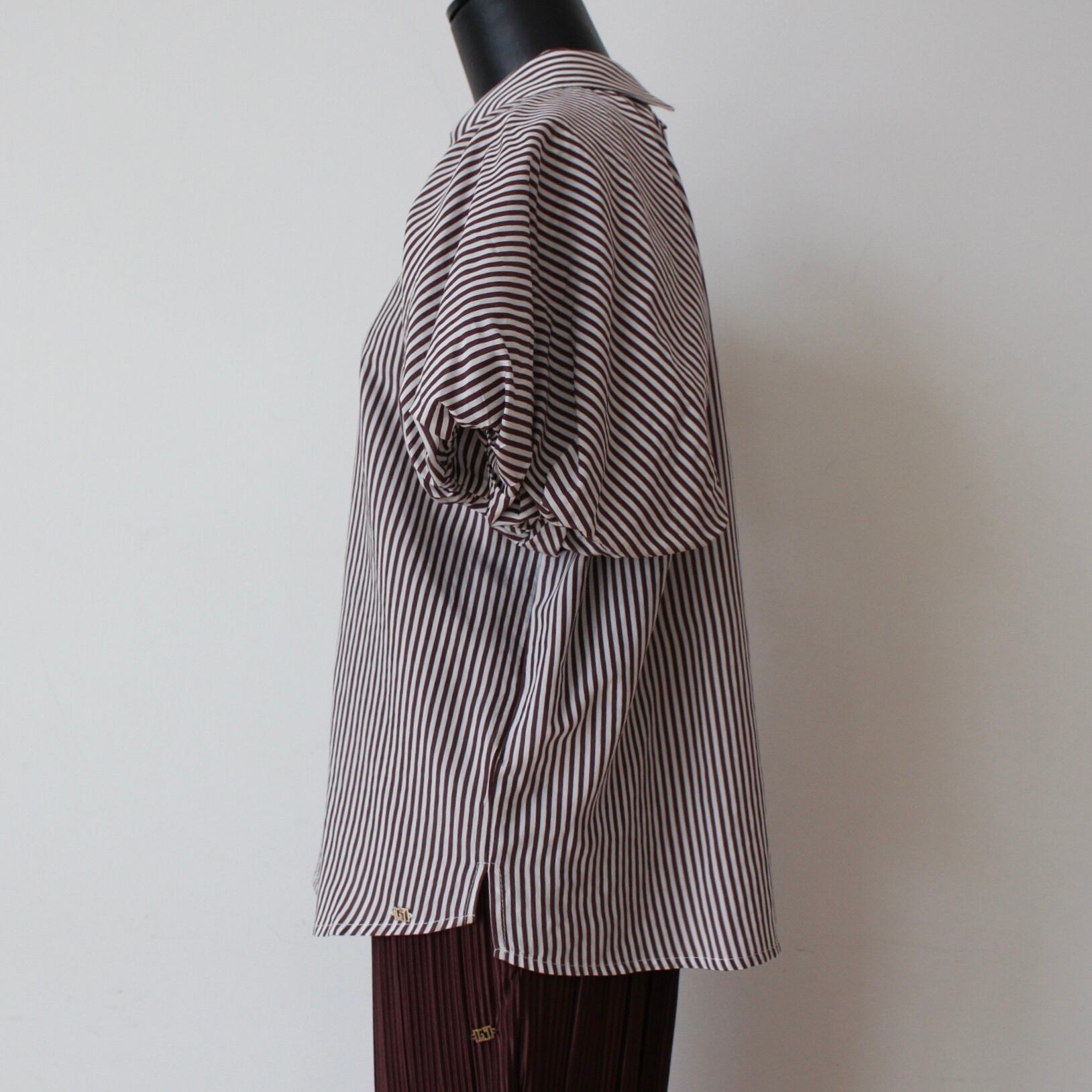 GAUDI ブラウン✖️ホワイトストライプバルーンスリーブブラウス ITALY:611BD45029 ¥27,000➕tax