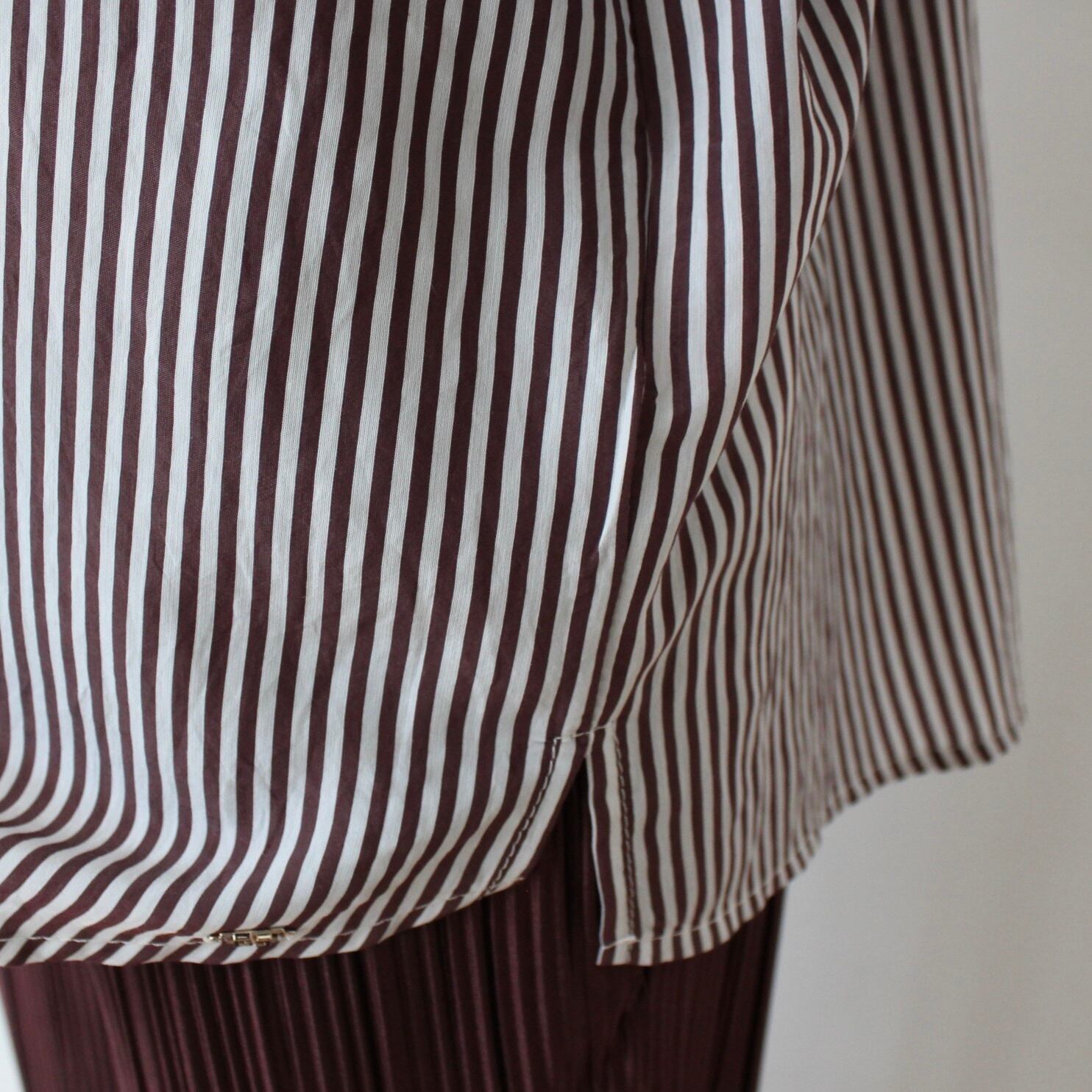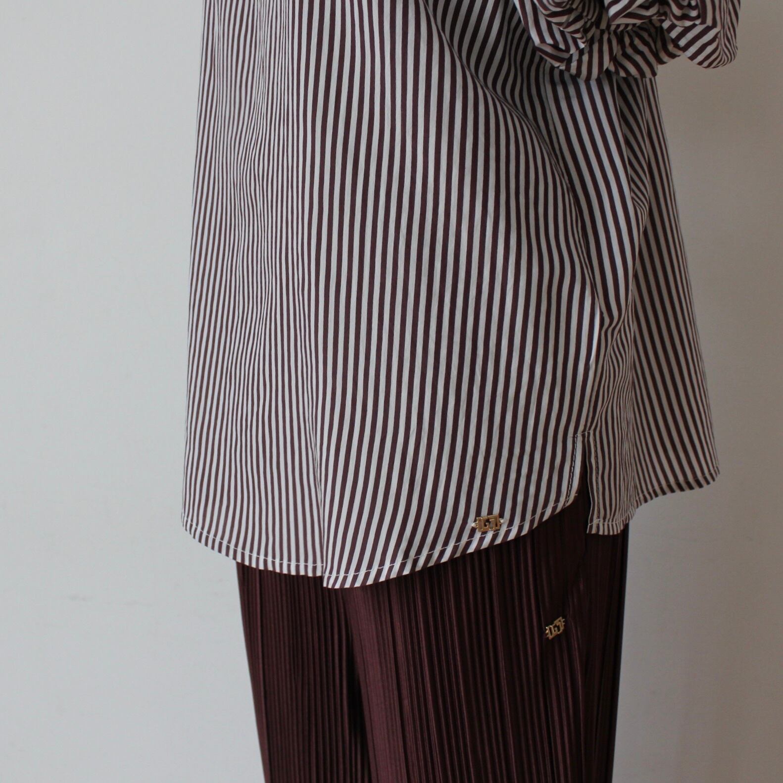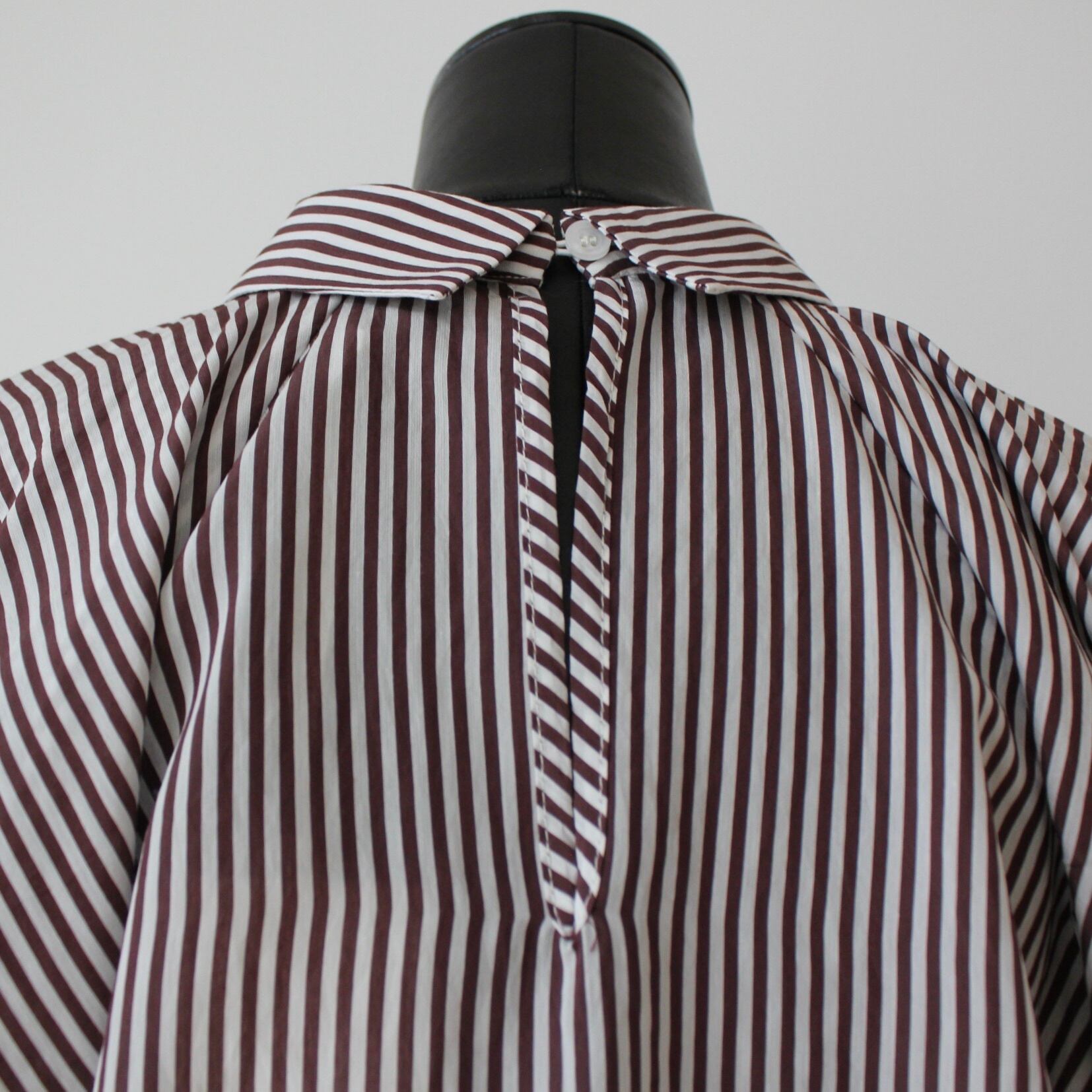 GAUDI ブラウン✖️ホワイトストライプバルーンスリーブブラウス ITALY:611BD45029 ¥27,000➕tax