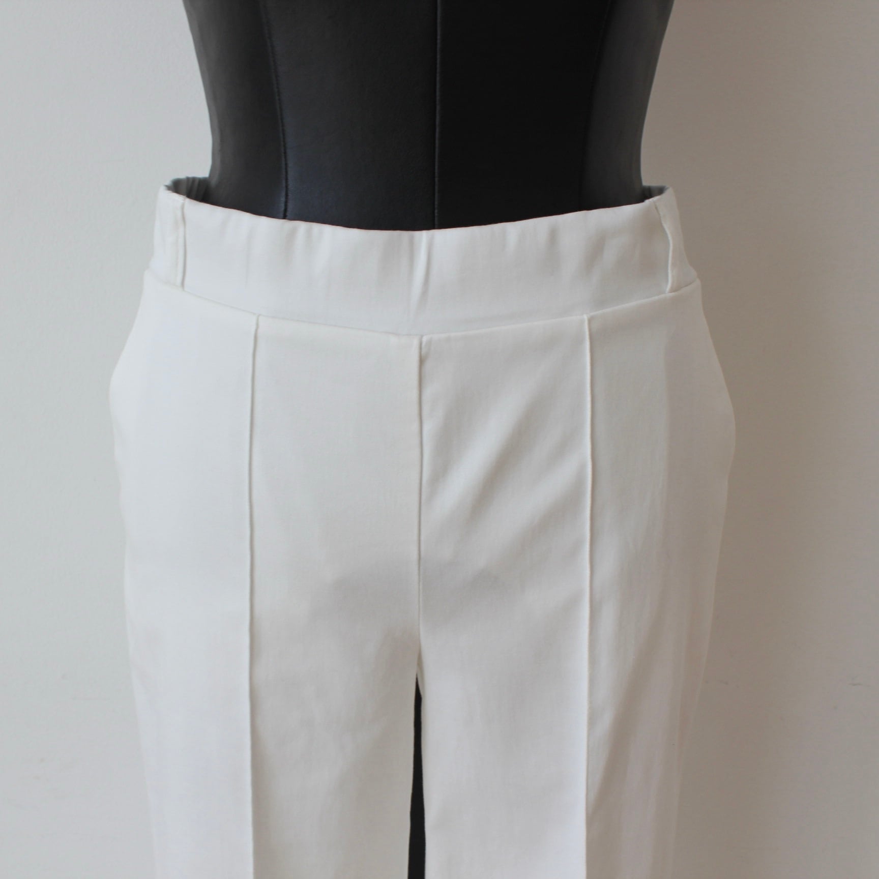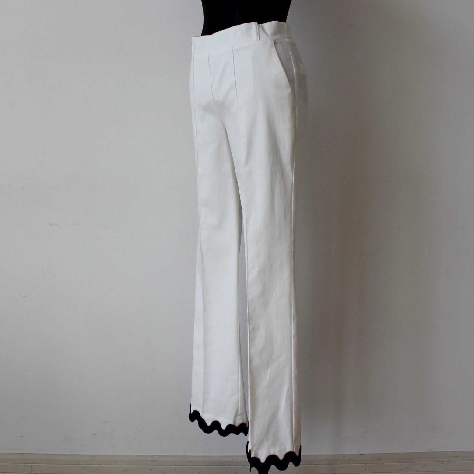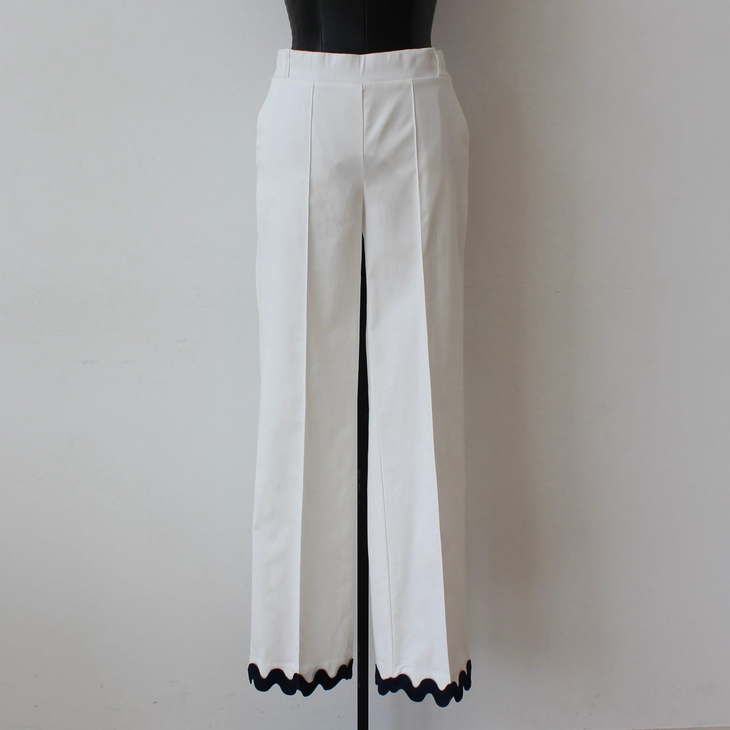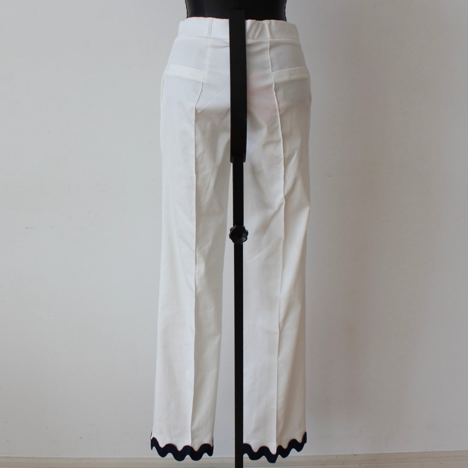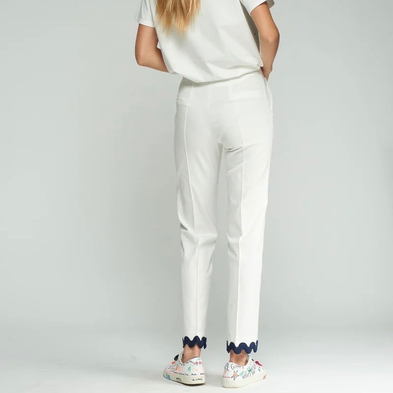VILAGALLO グログランリボン裾デザインホワイトストレッチリヨンセルコットンパンツ SPAIN:VIL33291 ¥28,000+tax