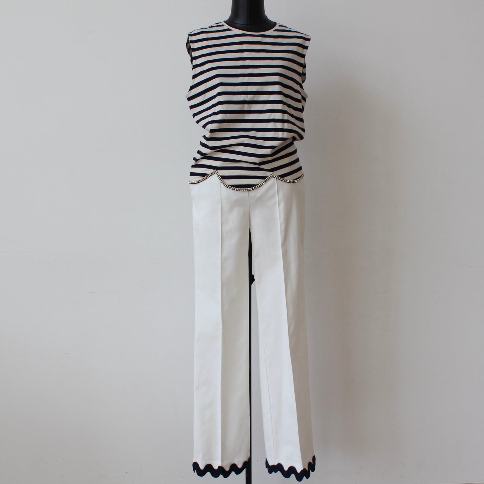 このパンツは、カジュアルなTシャツやブラウスと相性抜群で、デイリースタイルを楽しむことができます。また、オフィススタイルやお出かけシーンでも活躍すること間違いなし。さらに、サンダルやスニーカーを合わせることで、季節を問わず様々なコーディネートが可能です。ぜひ、VILAGALLO グログランリボン裾デザインホワイトストレッチリヨンセルコットンパンツで、あなたのスタイルに洗練された魅力を取り入れてみてください!