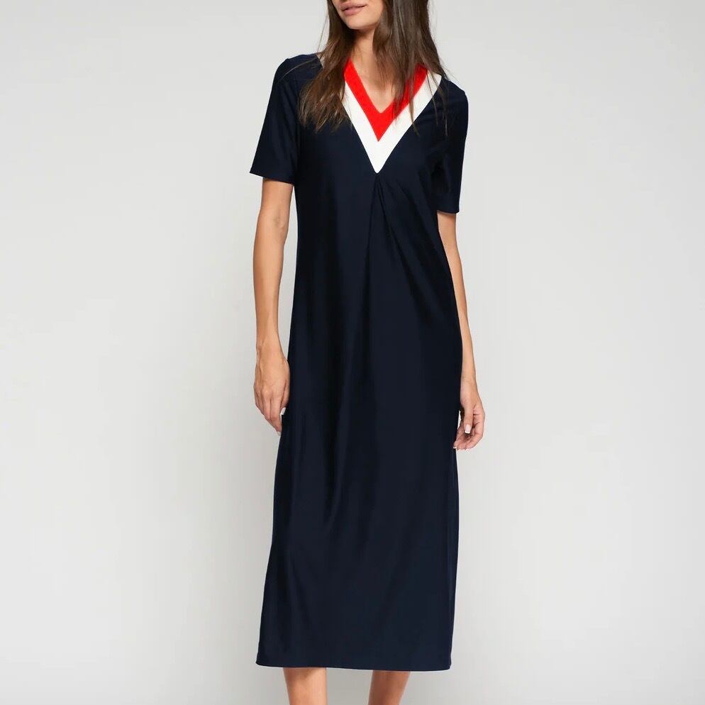 VILAGALLO ネイビーVポイントストレッチワンピース SPAIN:VIL33424 ¥33,000+tax