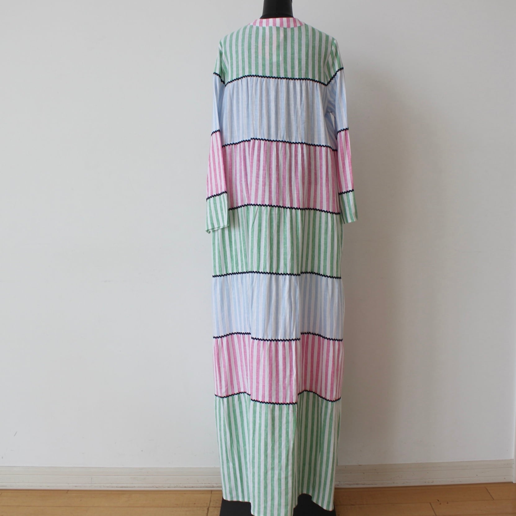 VILAGALLO リネンマルチカラーストライプティアード黒グランリボンポイントマキシワンピース SPAIN:VIL33416 ¥53,000+tax