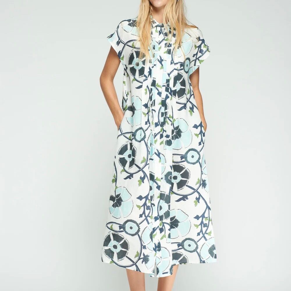 VILAGALLO ホワイトリネンブルーフラワープリントワンピース SPAIN:VIL33357 ¥49,000+tax