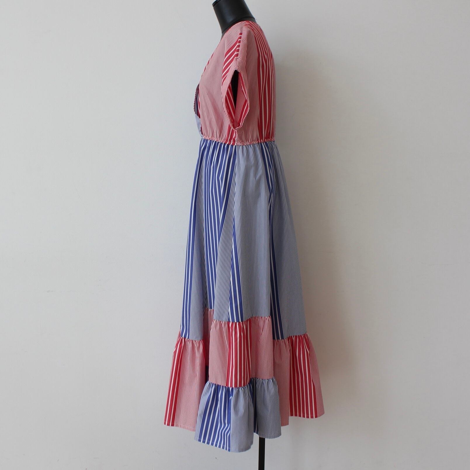 VILAGALLO トリコロールストライプティアードコットンワンピース SPAIN:VIL33521 ¥46,000+tax