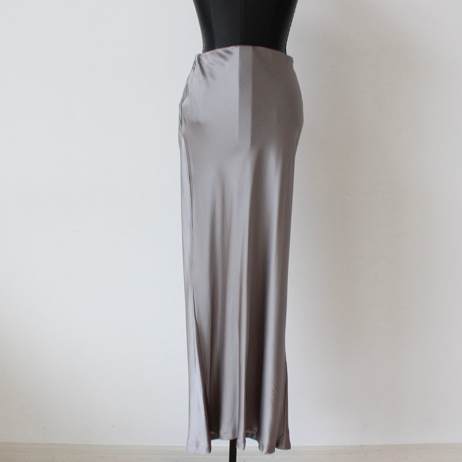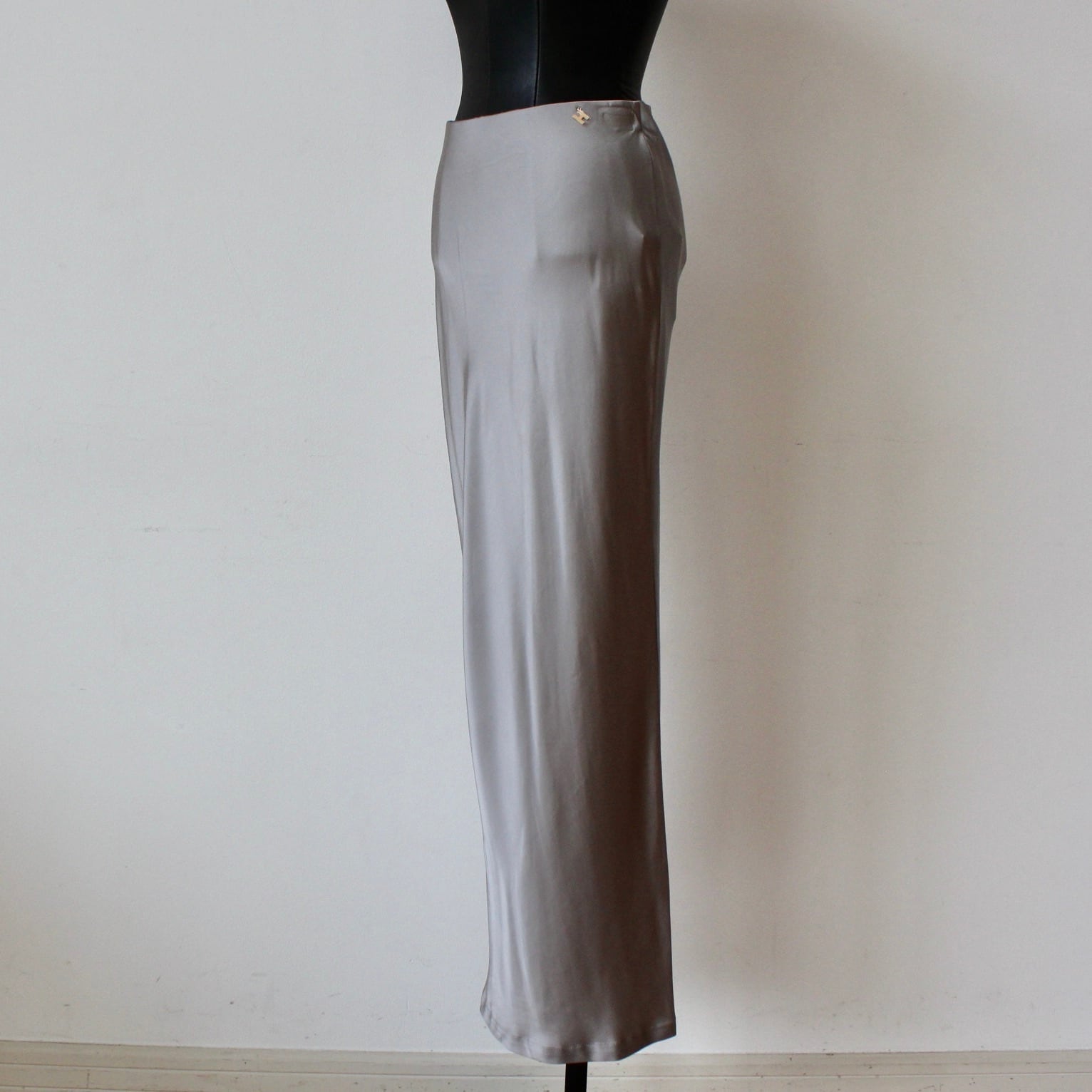 **SILVIAN HEACH シルバーソフトサテンマキシスカートは、イタリア製の上質なサテン素材を使用した、エレガントで華やかなスカートです!光沢感のあるシルバーが気品を漂わせ、マキシ丈のデザインは女性らしいスレンダーなシルエットを演出します♪ 軽やかな素材感は、着心地が良く、デイリーから特別なシーンまで幅広く活躍する一着です。**