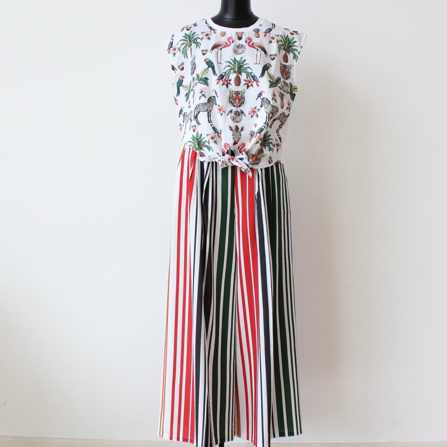 このパンツは、シンプルなトップスと合わせることで、鮮やかなカラーリングを引き立てるスタイリングが完成します。また、ジャケットやカーディガンとコーディネートすることで、秋冬の季節にもご活用いただけます。VILAGALLO マルチカラーストライプワイドコットンパンツで、あなたのワードローブに新たな魅力を加えてみてはいかがでしょうか!