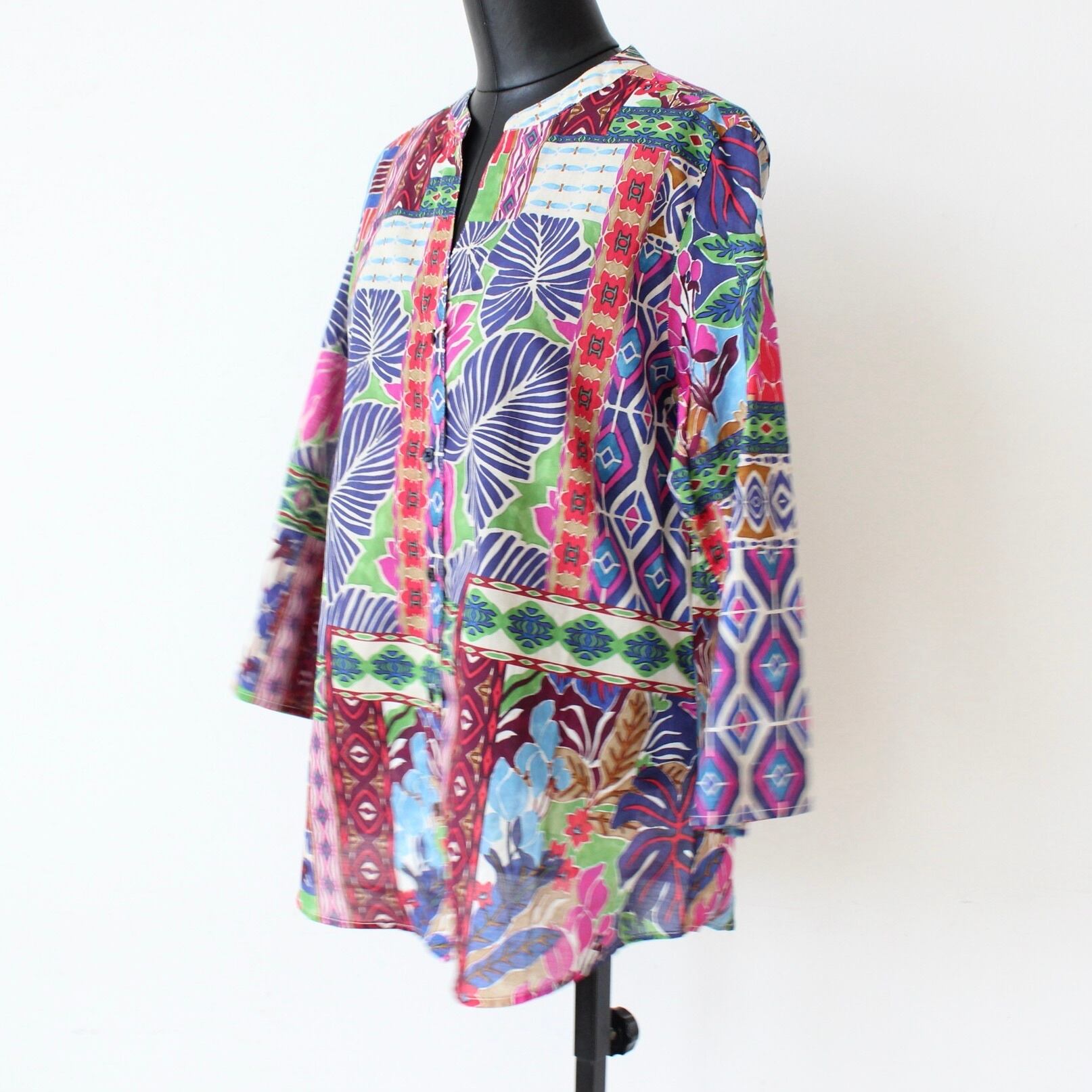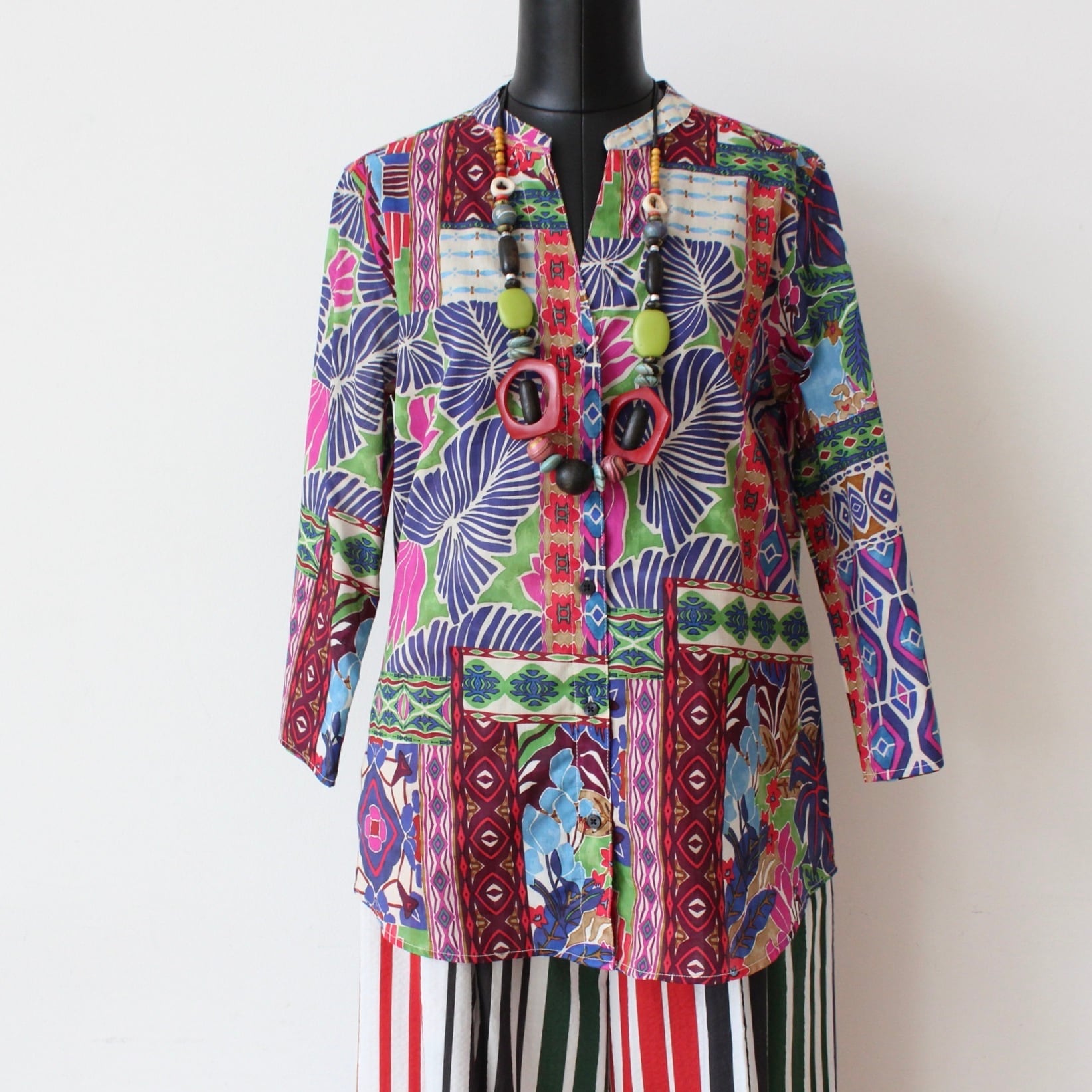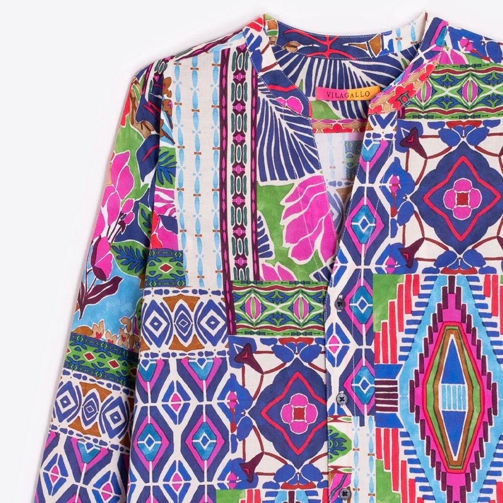 **VILAGALLO ボタニカルプリント柔らかコットンスタンドカラーブラウスは、スペイン製の高品質なコットン素材を使用した、華やかで上品なデザインのブラウスです!ボタニカルプリントが施された生地は、自然の美しさを感じさせる素敵な一着となっており、柔らかいコットンは通気性肌触り着心地も抜群です♪ シーズンを問わず、デイリーから特別なシーンリゾートまで幅広くお使いいただけるブラウスです。**