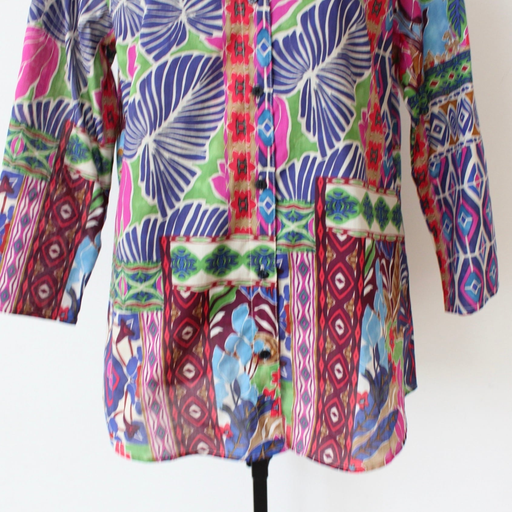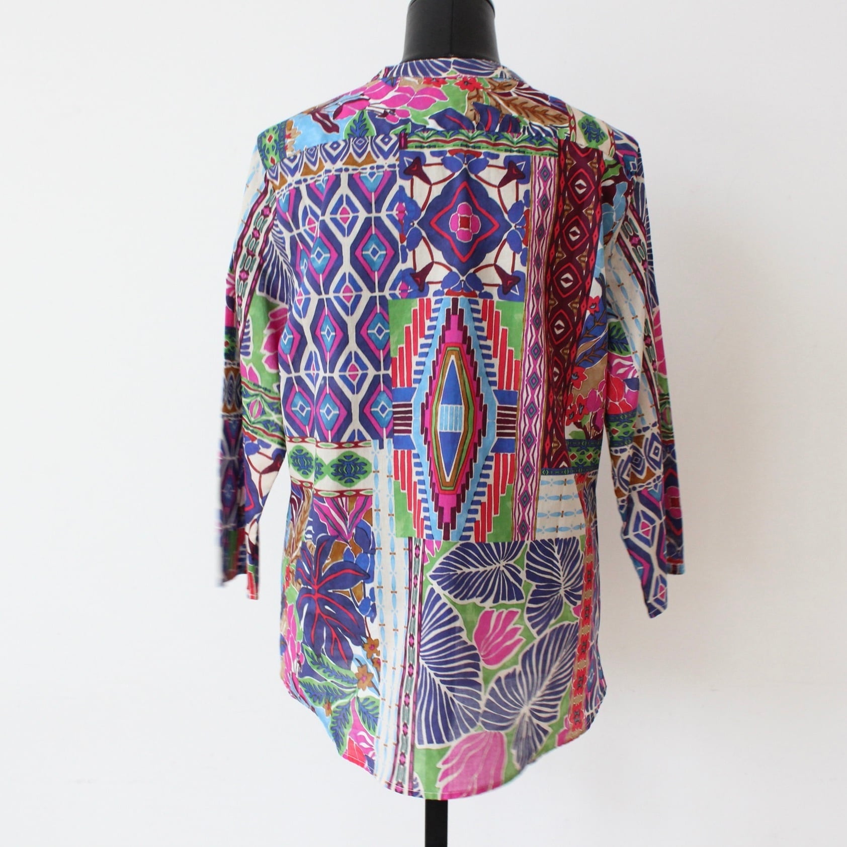 VILAGALLO ボタニカルプリント柔らかコットンスタンドカラーブラウス SPAIN:VIL33322 ¥26,000+tax