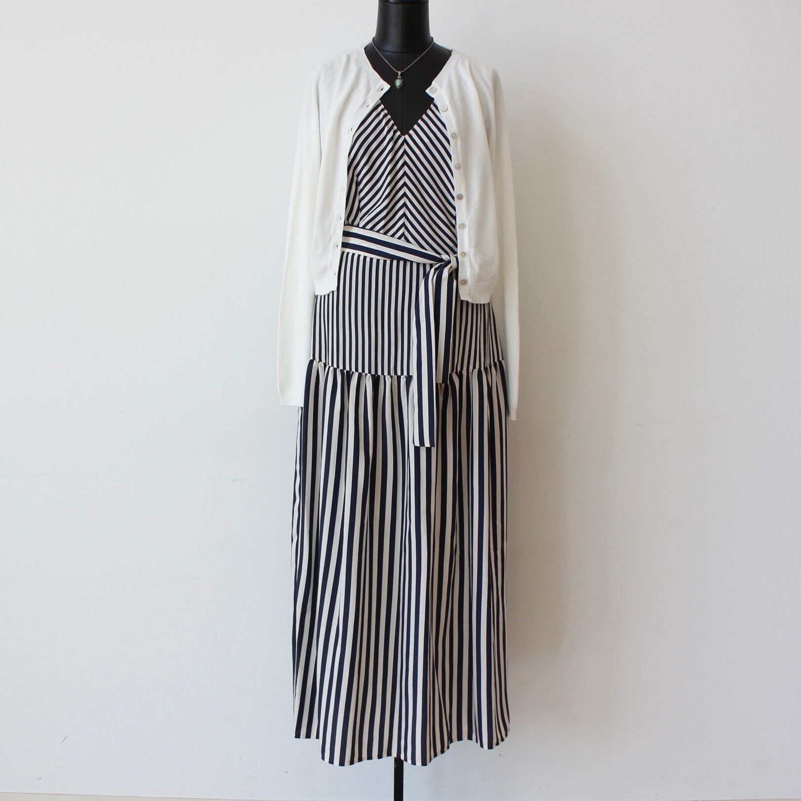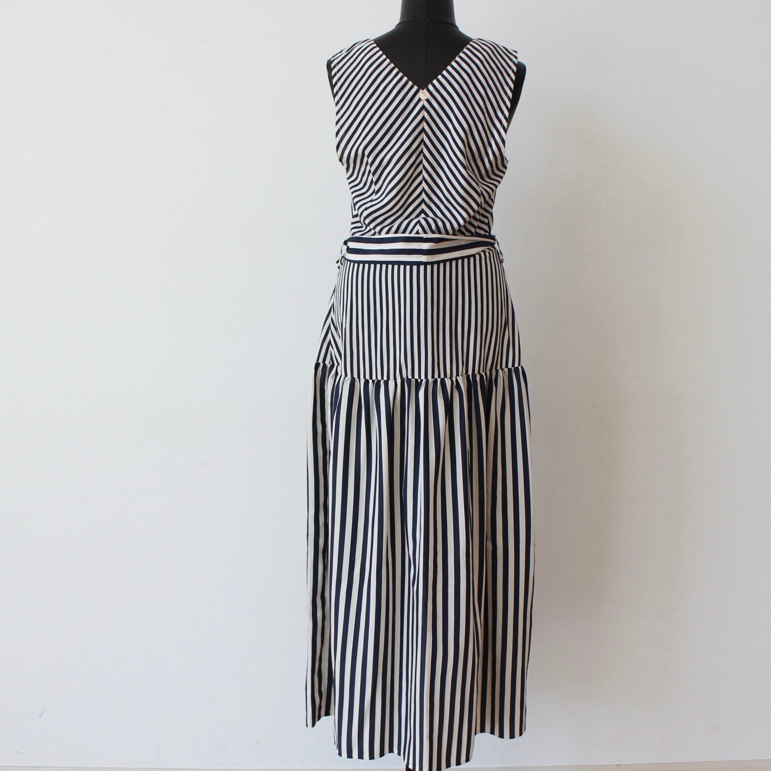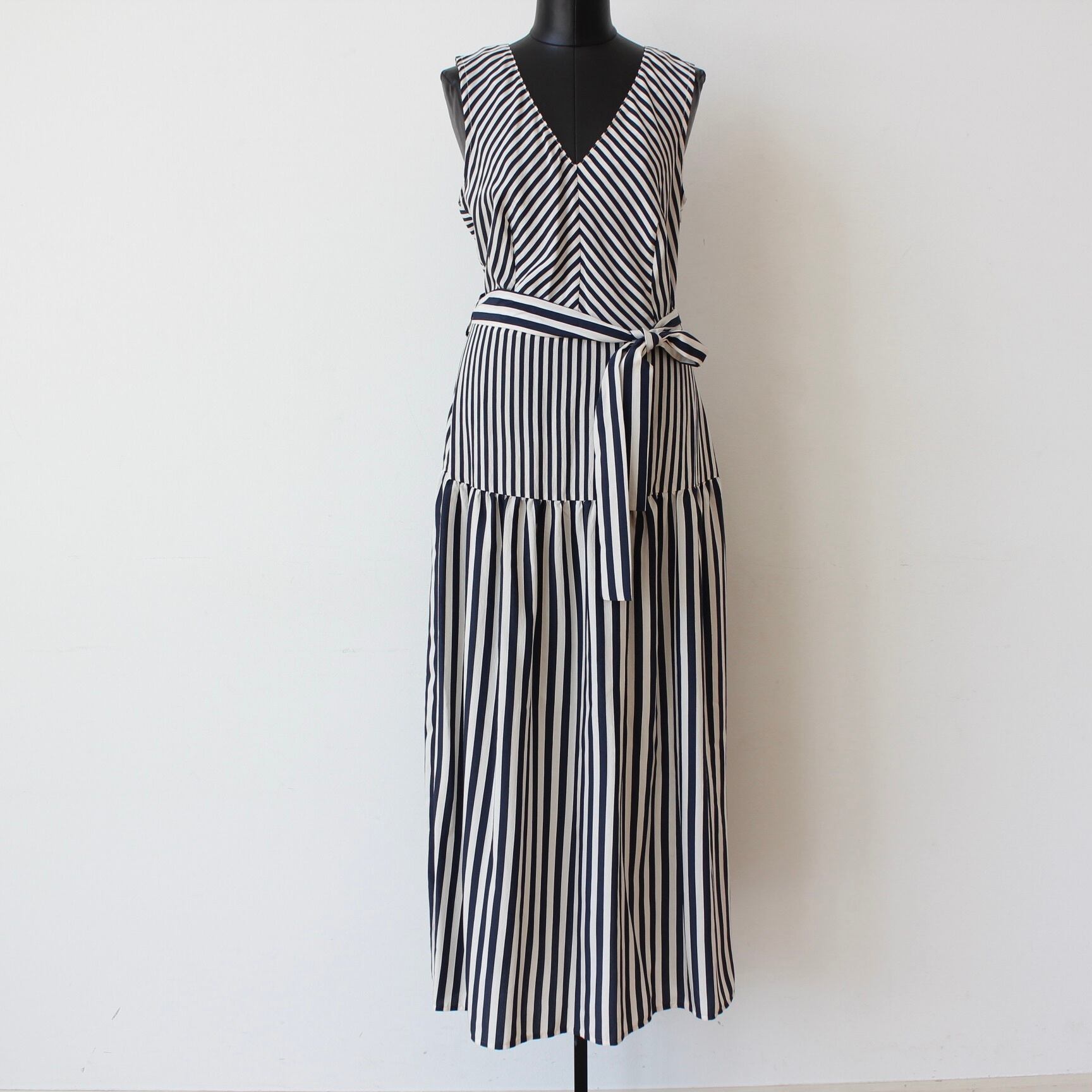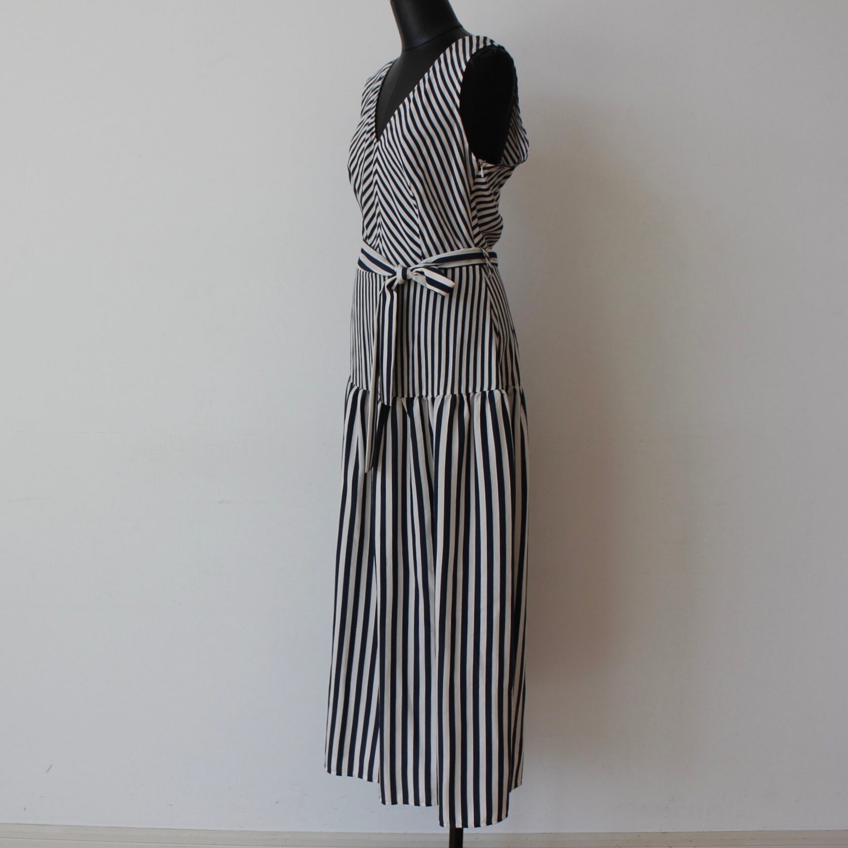 RINASCIMENTO ネイビー✖️ホワイトストライプVネックティアードロングワンピース ITALY:RIN129063 ¥39,000+tax