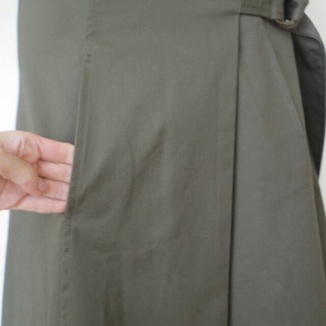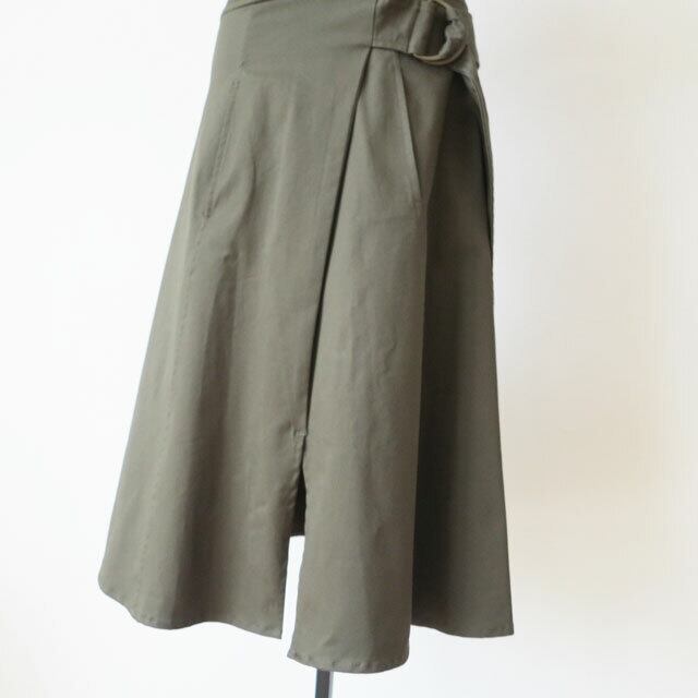 Aラインスカートのさり気ないスリットと、ミリタリーデザインがマッチし