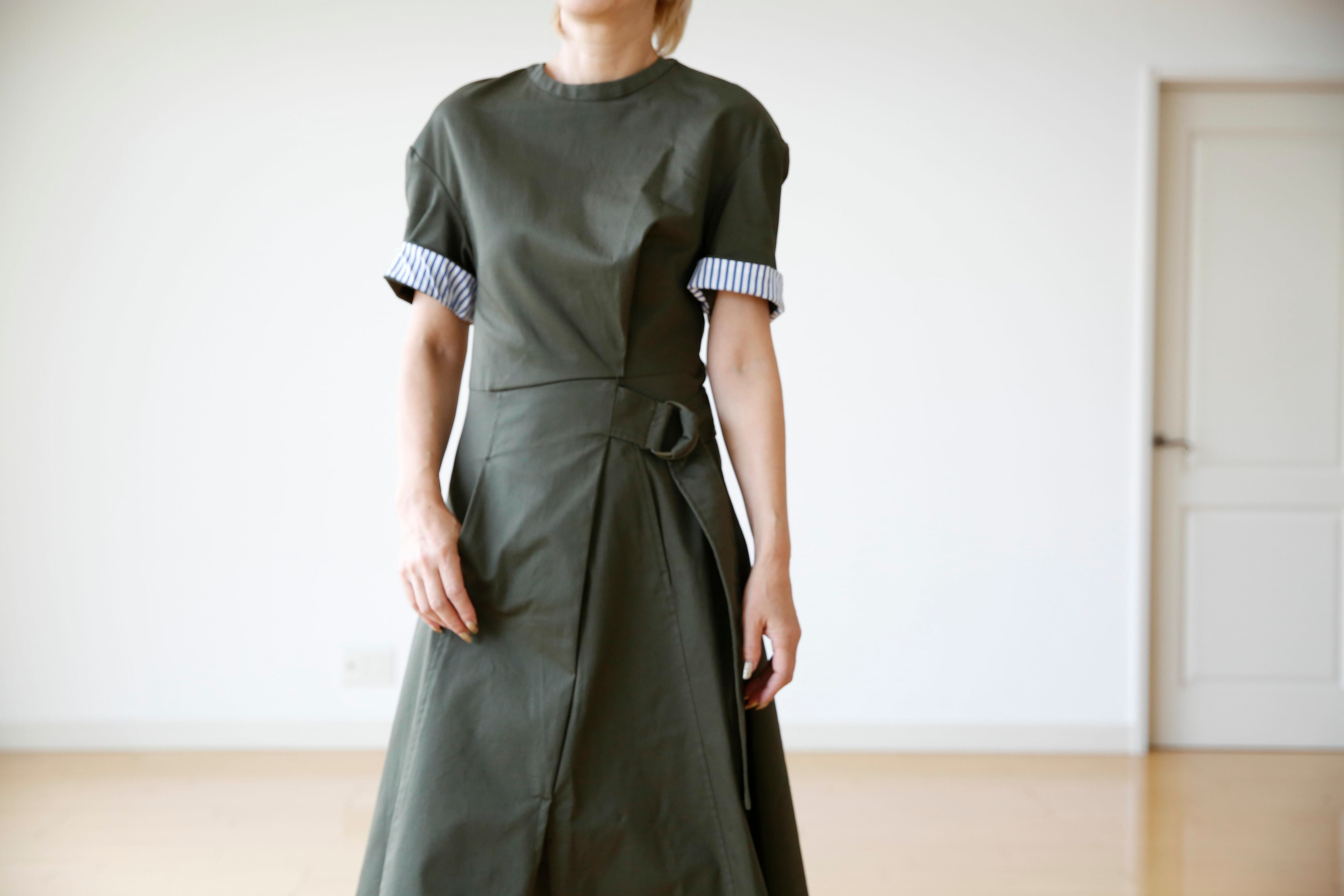 ウエストはベルト付きで見た目はラップ風に仕上げました。