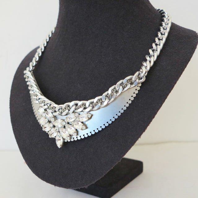 エレガントなビジューにハードなチェーンが魅力的なネックレスの登場。