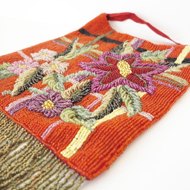 総ビーズでお花模様が描かれた、クラシカルで上品なビーズバッグ。