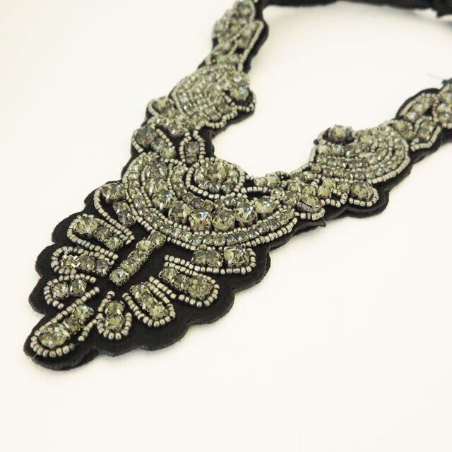 ストーンとビーズがキラキラと輝き、胸元で存在感を引き立たせてくれます。