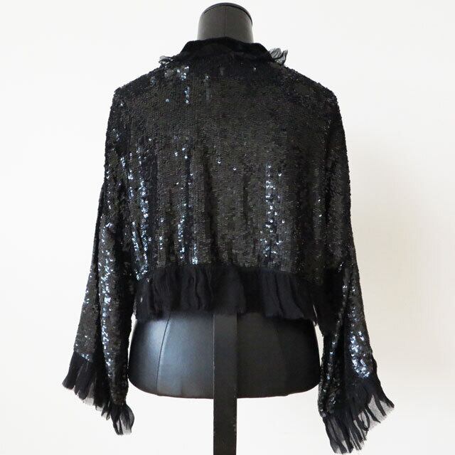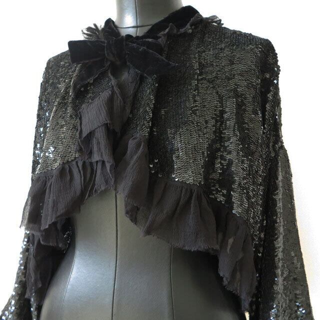ツヤのあるブラックカラーのスパンコールが全面にほどこされたボレロカーディガンの登場!
