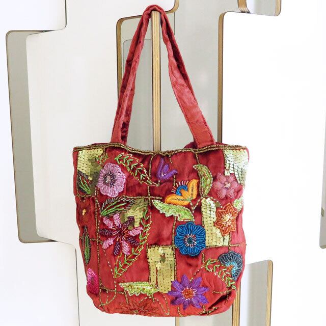 ベロア素材の生地にビーズと刺繍でお花模様が描かれた、クラシカルで上品なビーズバッグ。