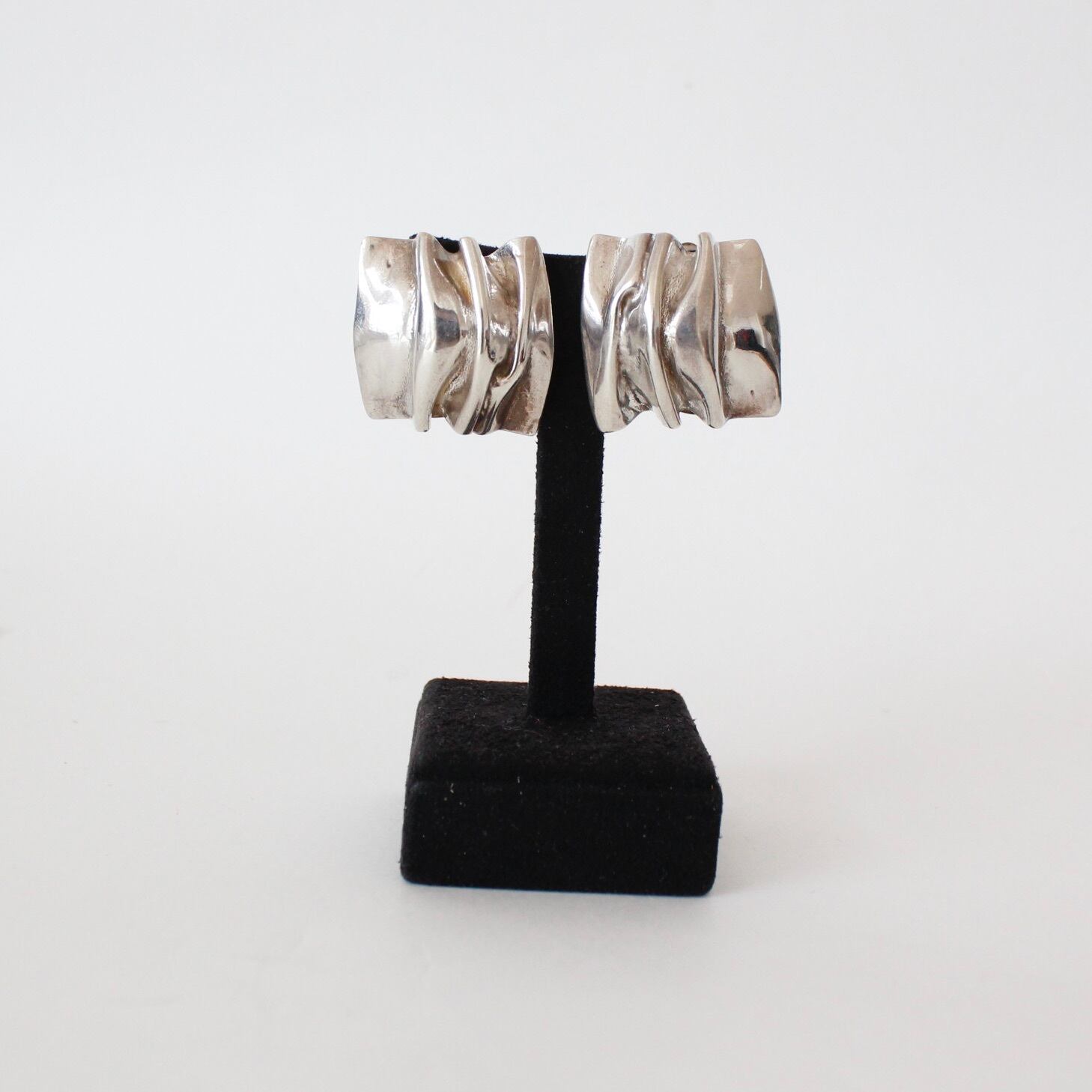 艶感のあるシルバーで立体的に波打つモチーフを描いたデザインのイヤリングです。