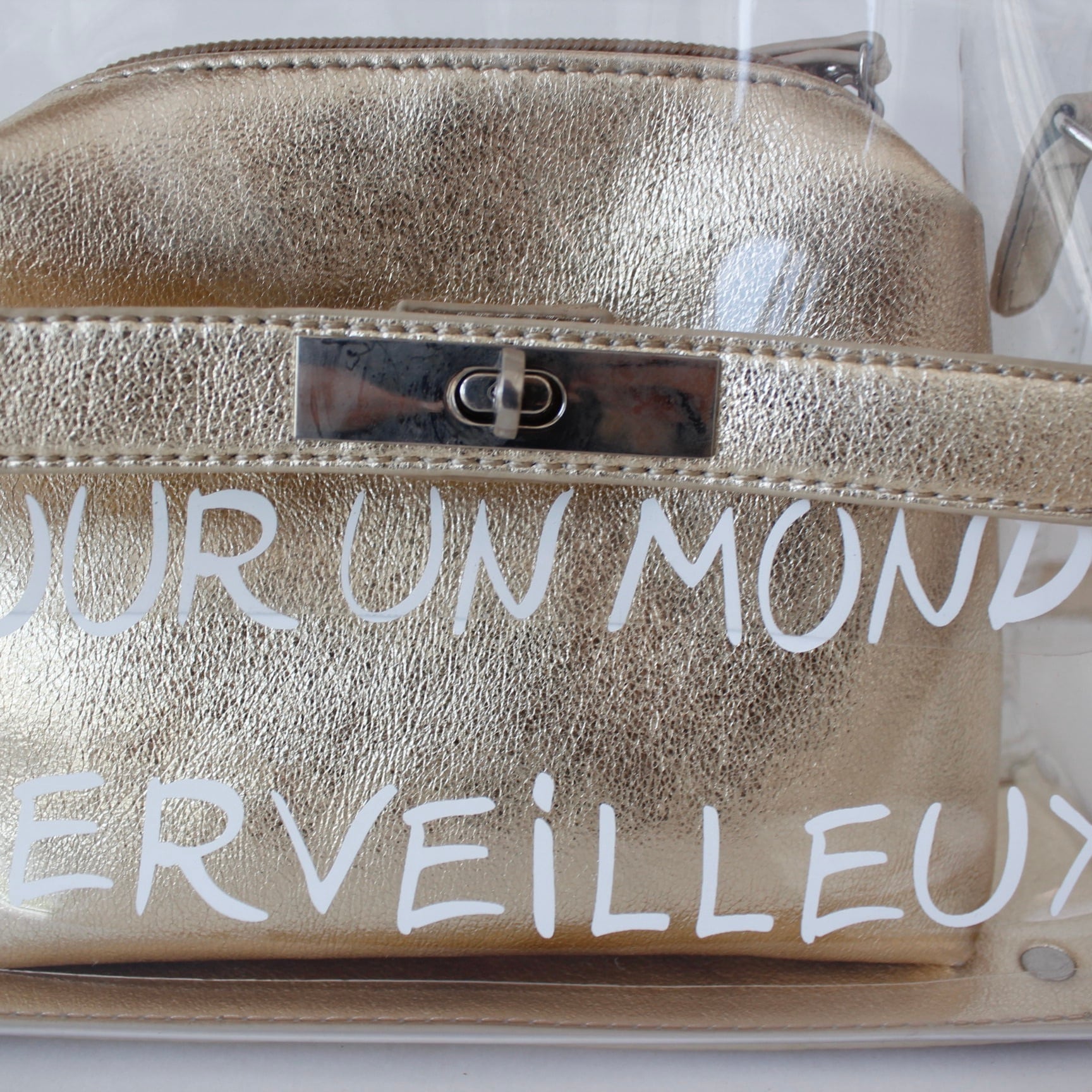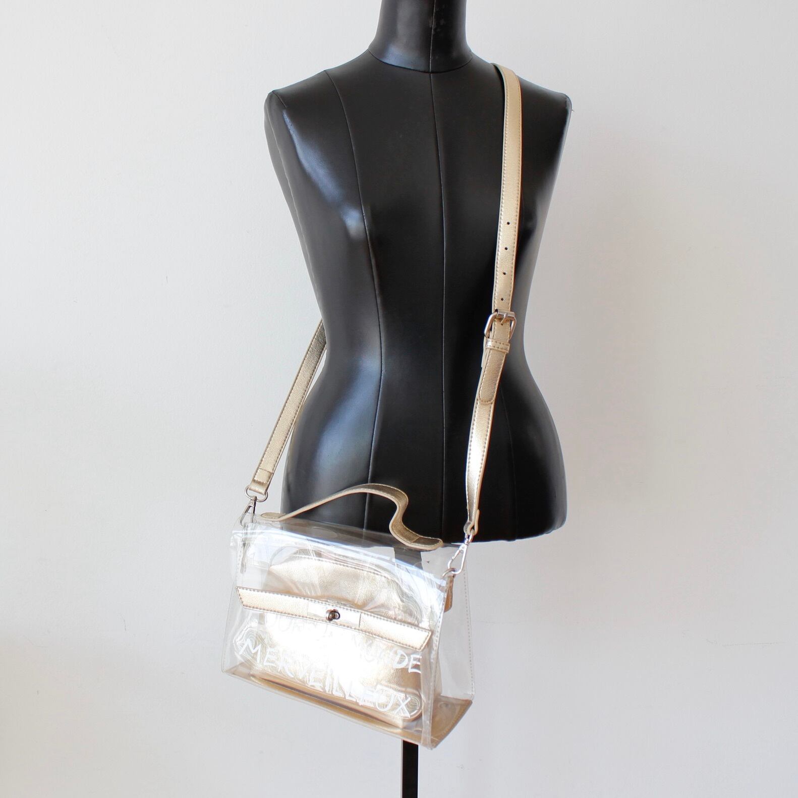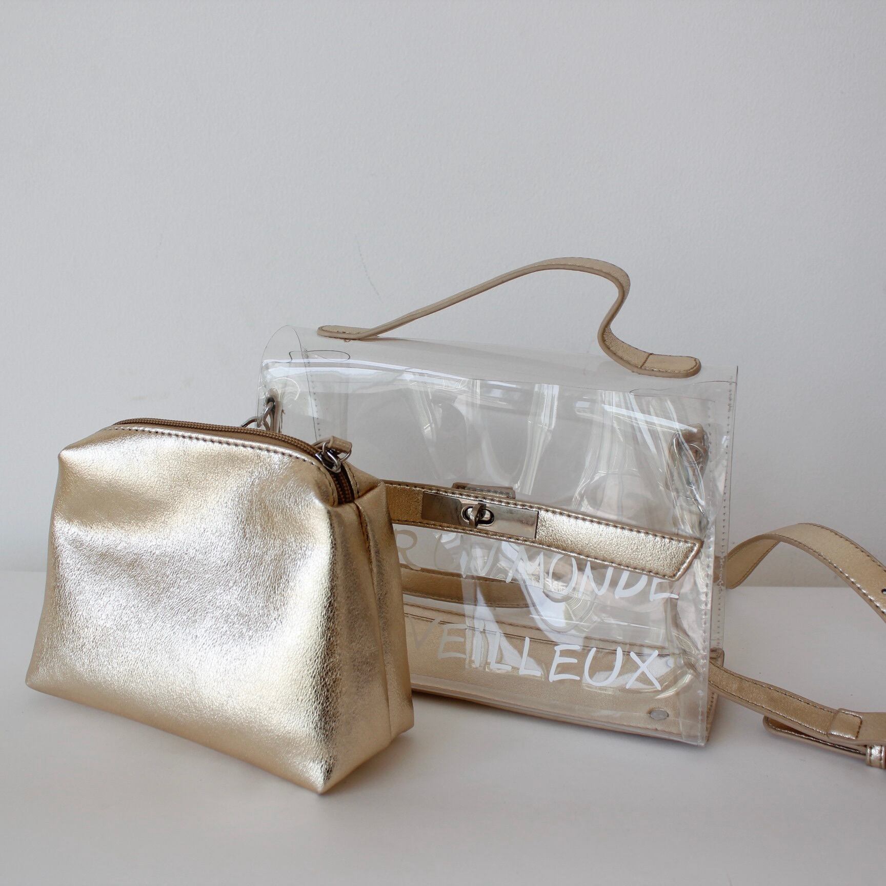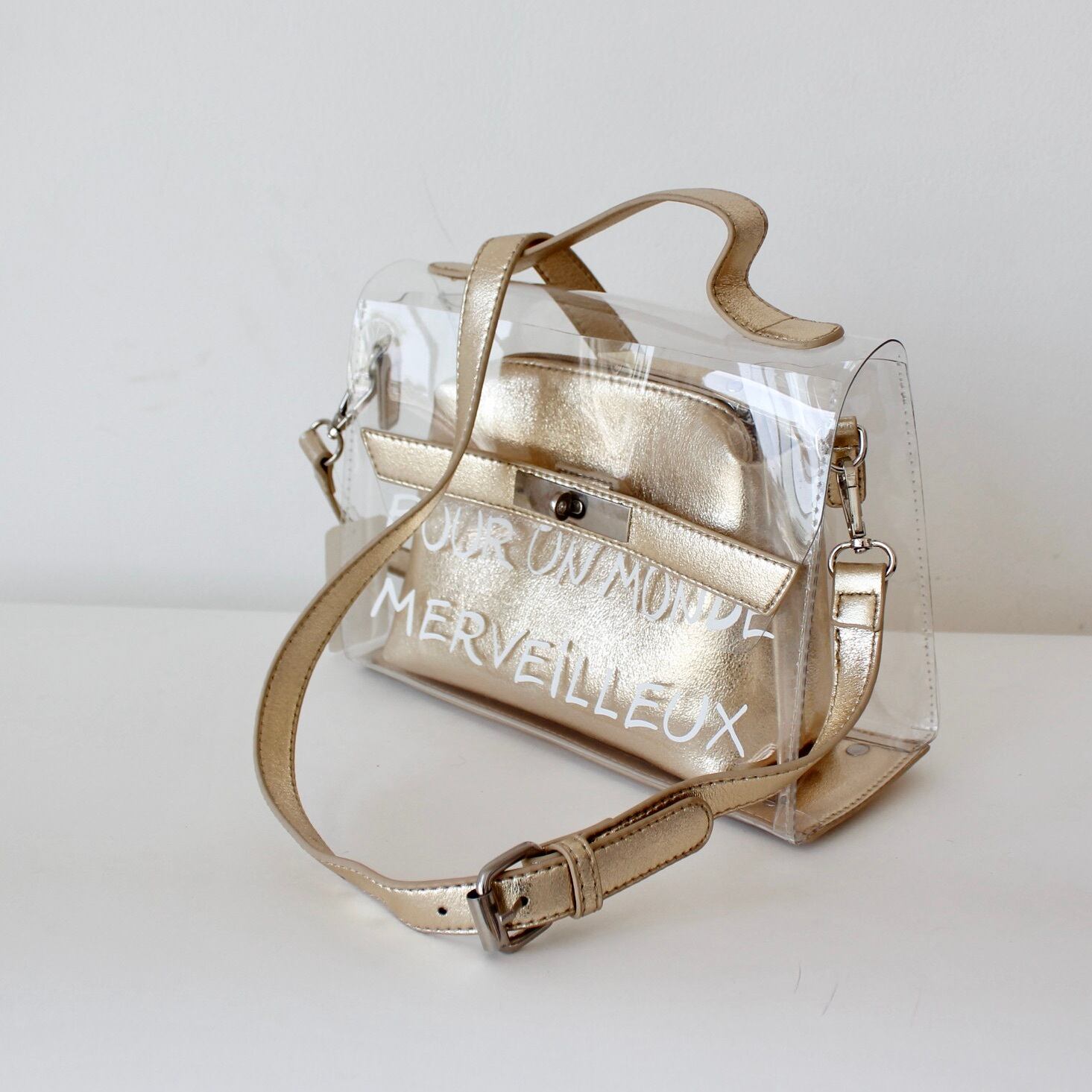 大人気!実用性も兼ね揃えた透明なクリアショルダーバッグがゴールドカラーで登場!