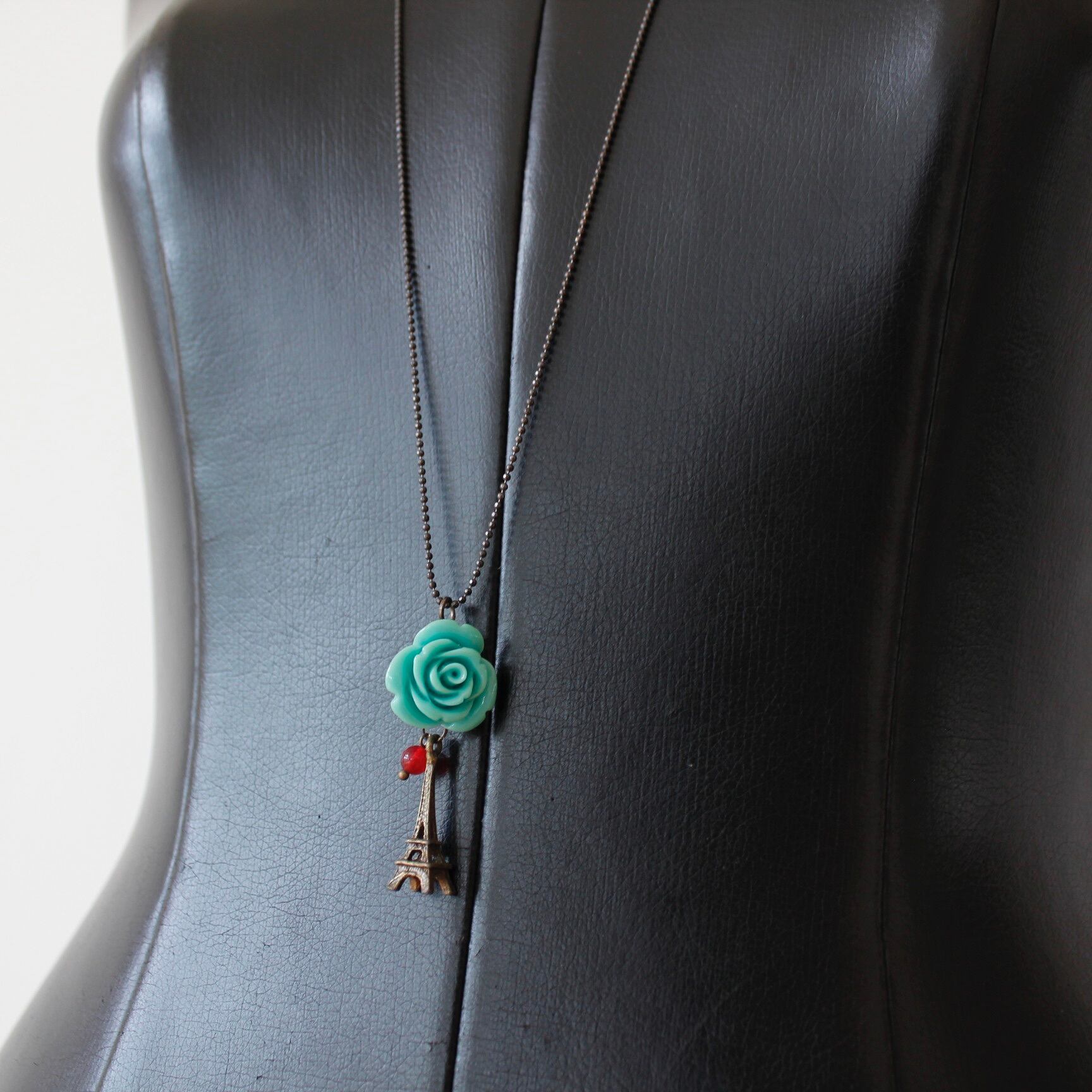 エッフェル塔のチャームがトップに施されたチェーンタイプのロングネックレス。