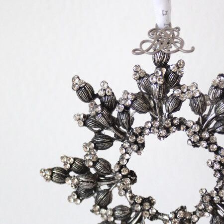 雪の結晶をモチーフにした様なリースデザインがシャビーなインテリアにマッチするオーナメント。