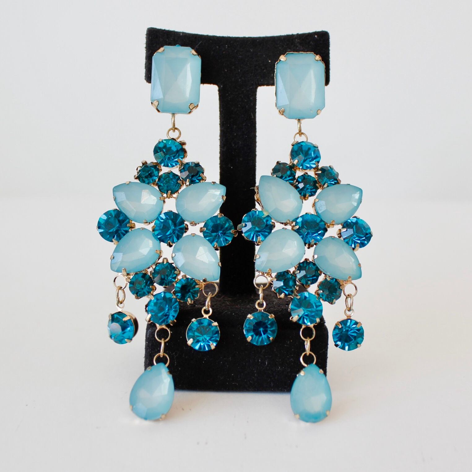 ブルーカラーのストーンが目を惹くヴィンテージライクなデザインのピアス。