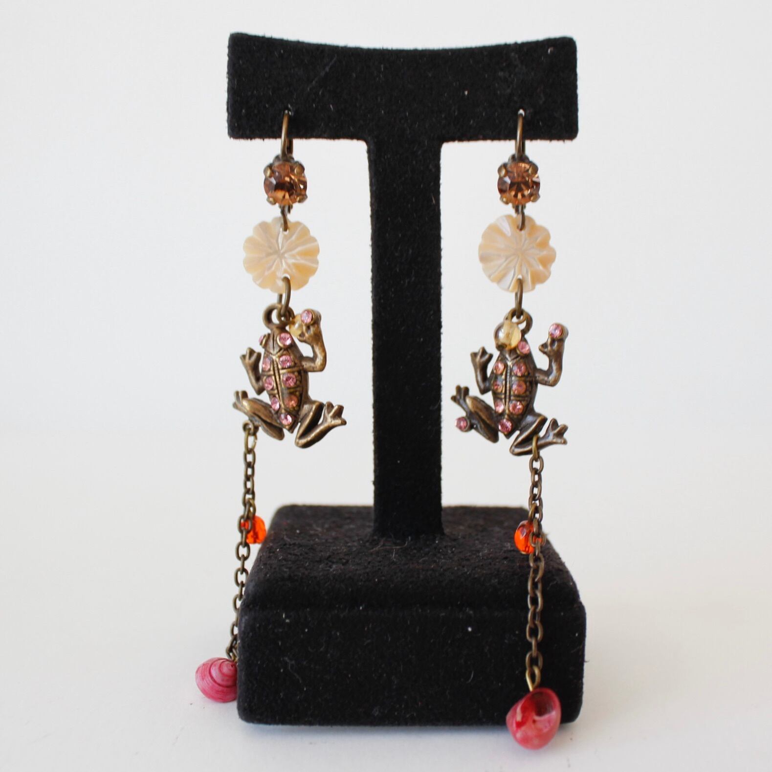 幸運をもたらすカエル(フロッグ)モチーフが愛らしいデザインのフックピアス 。