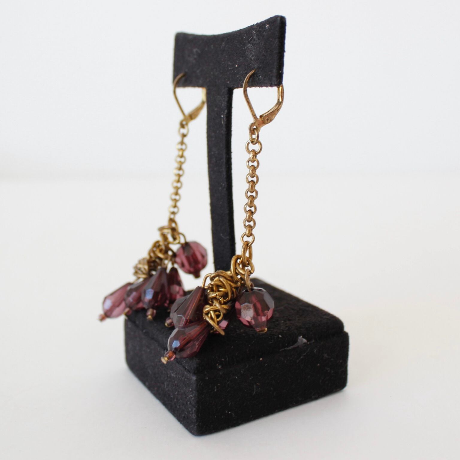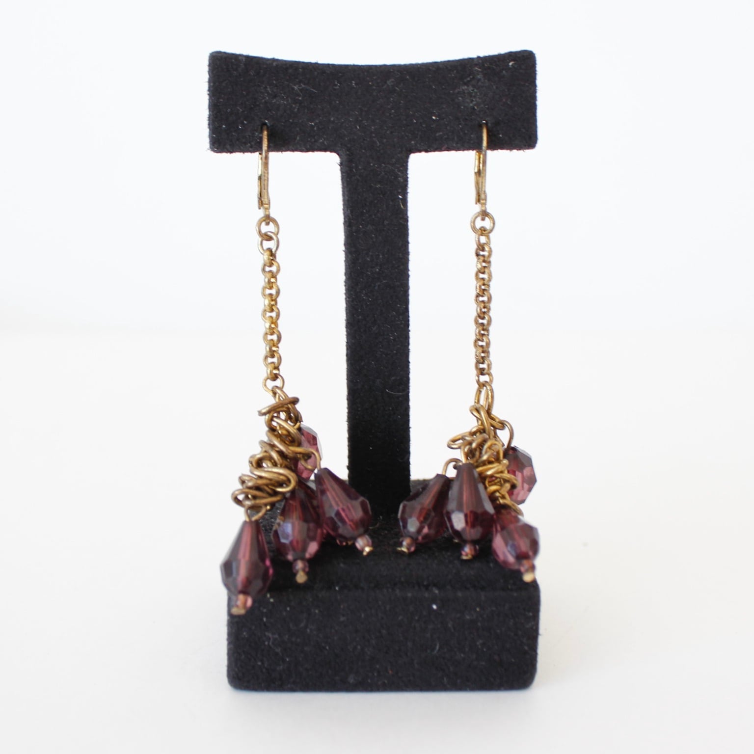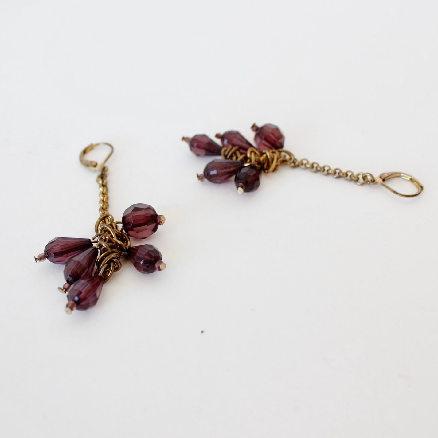 ゴールドチェーンがレトロな雰囲気で、ビーズが落ち着いたパープルカラーなので、甘くなり過ぎずシックで大人可愛い女性を演出してくれます。