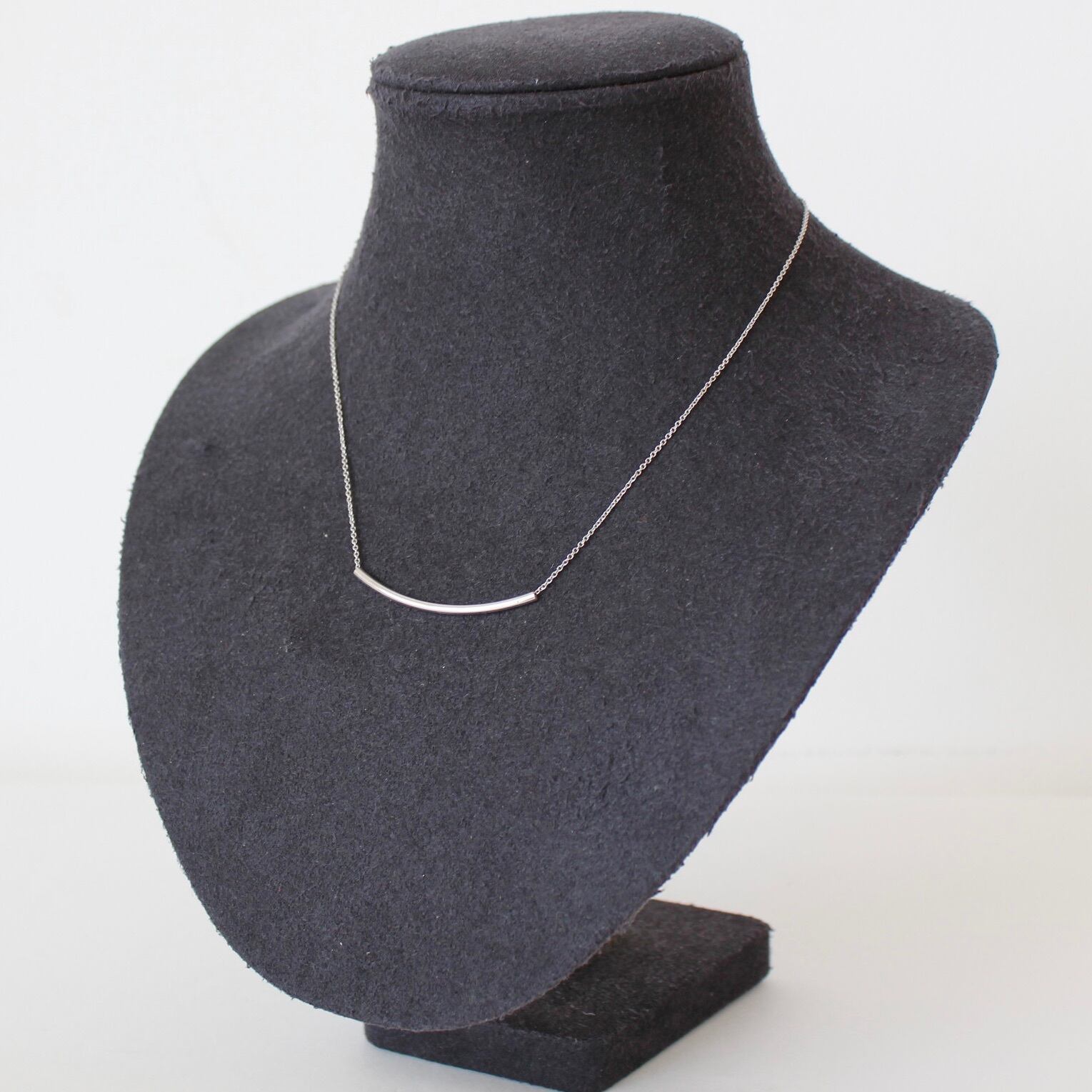 華奢なチェーンにトップのライン状のモチーフが主張しすぎず、さりげなく上品な印象を与えてくれます。