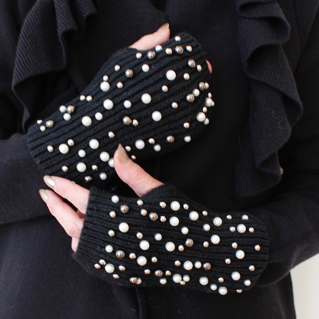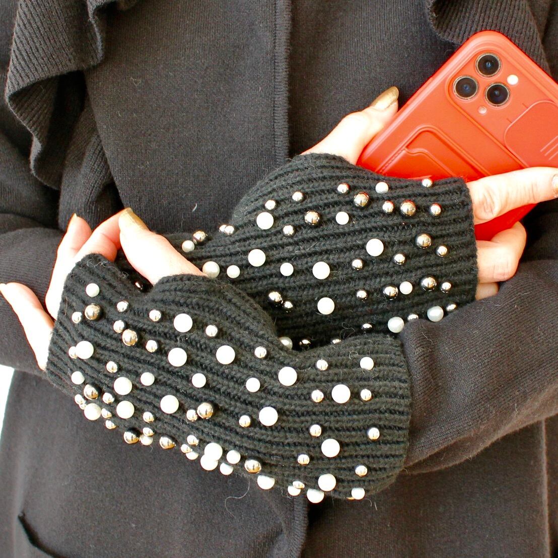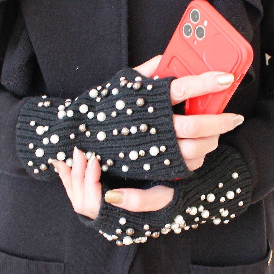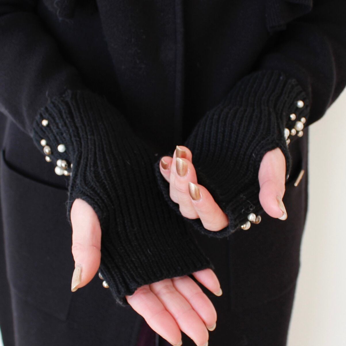 温もりのあるニット素材で仕上げたニットグローブに、パールが施されたオシャレなデザインが登場!