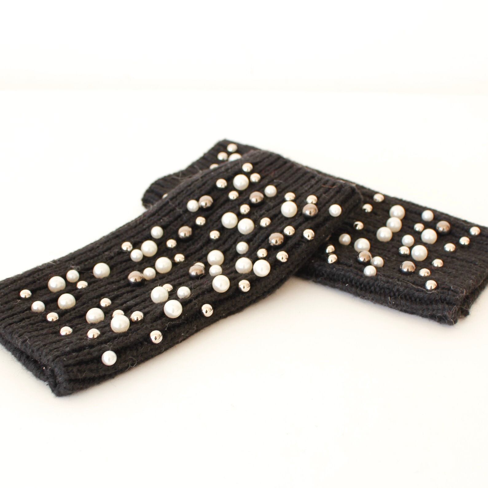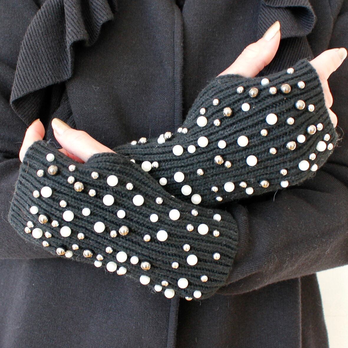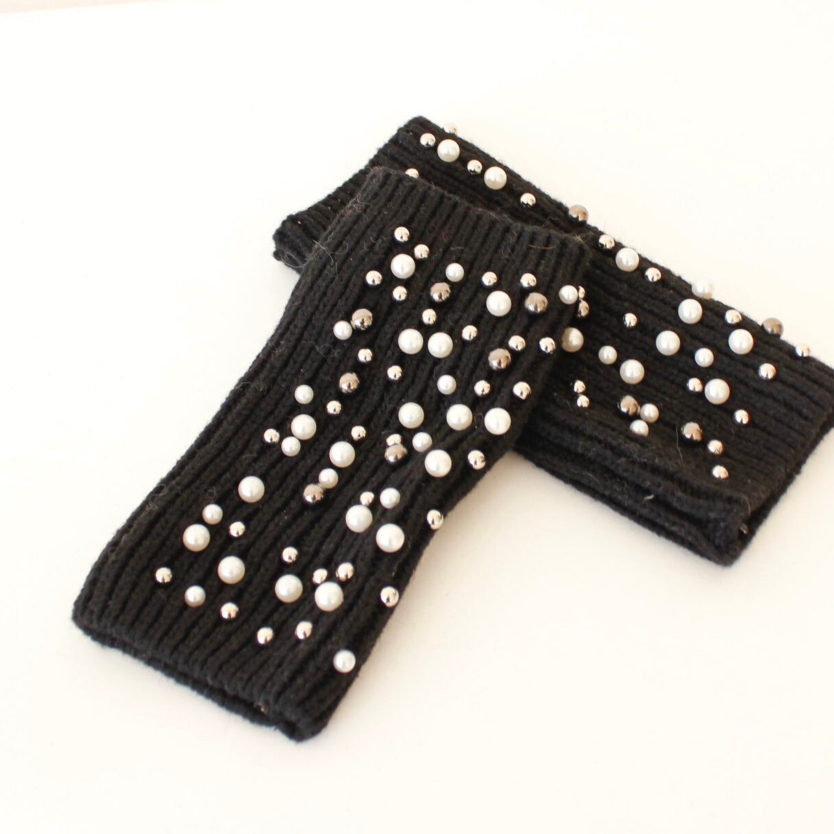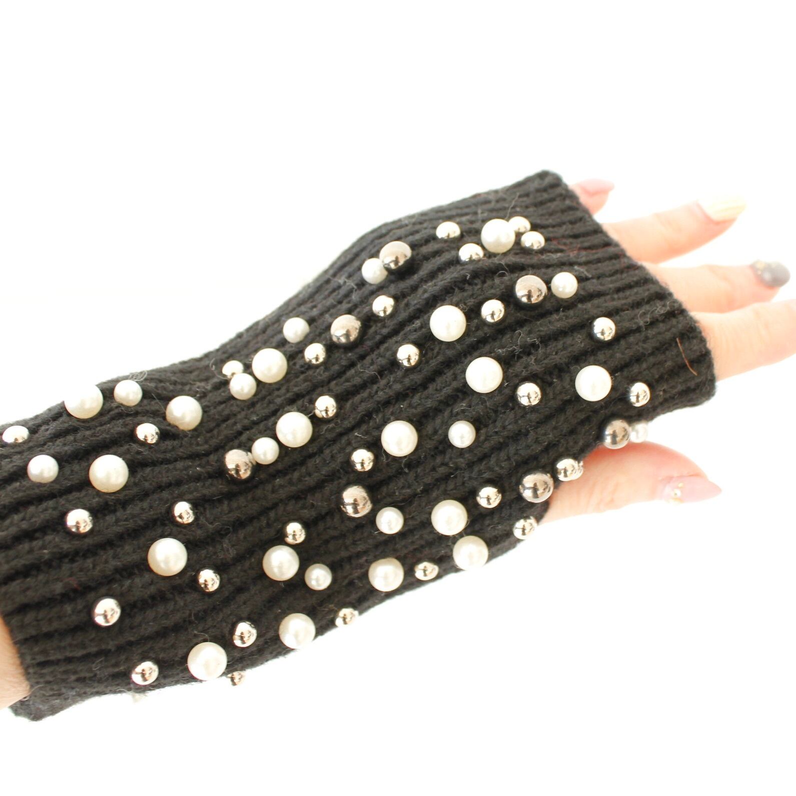 温もりのあるニット素材で仕上げたニットグローブに、パールが施されたオシャレなデザインが登場!