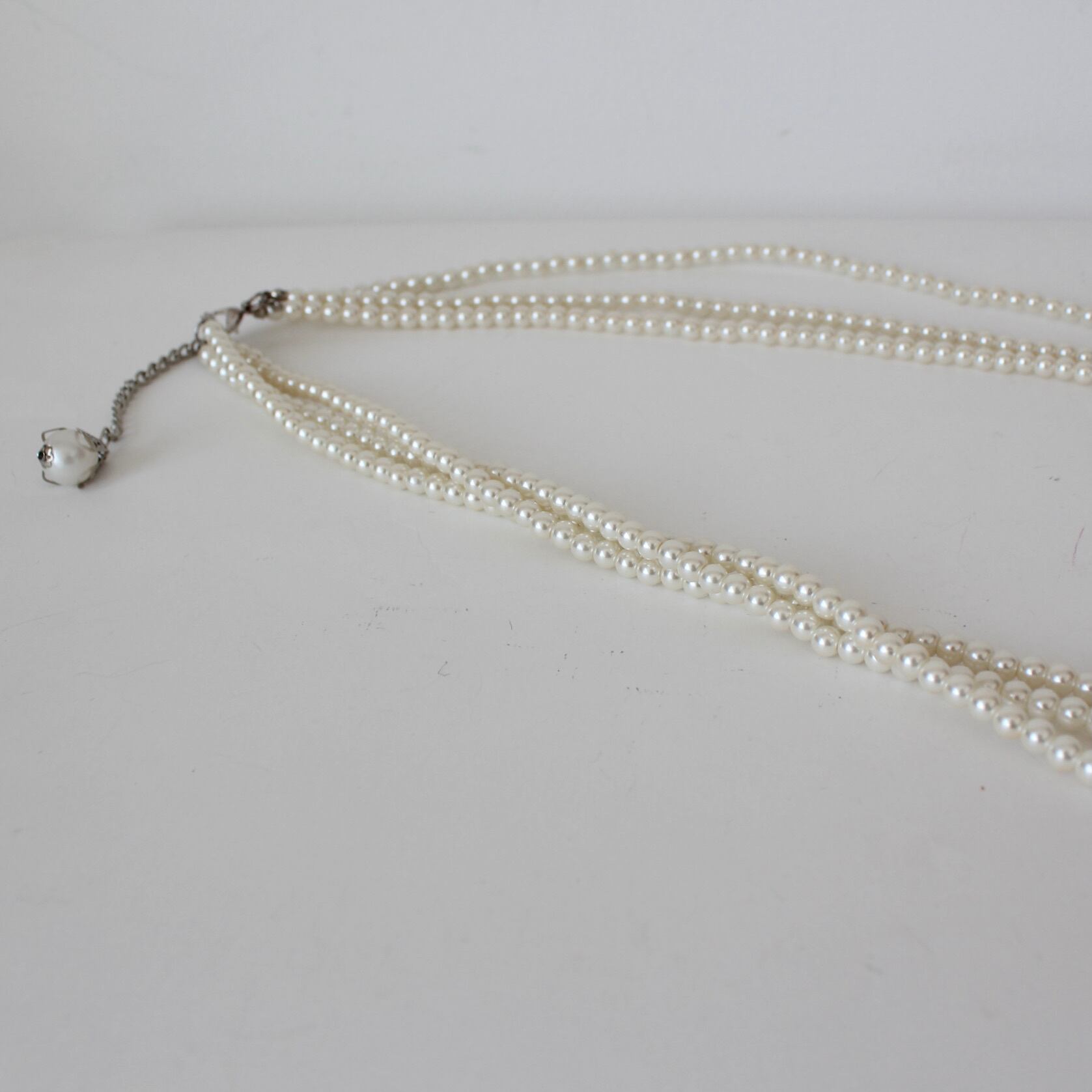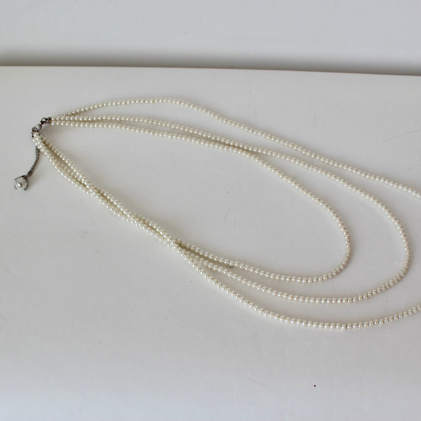アンティークの粒状のパールを3連重ねたロングネックレス。