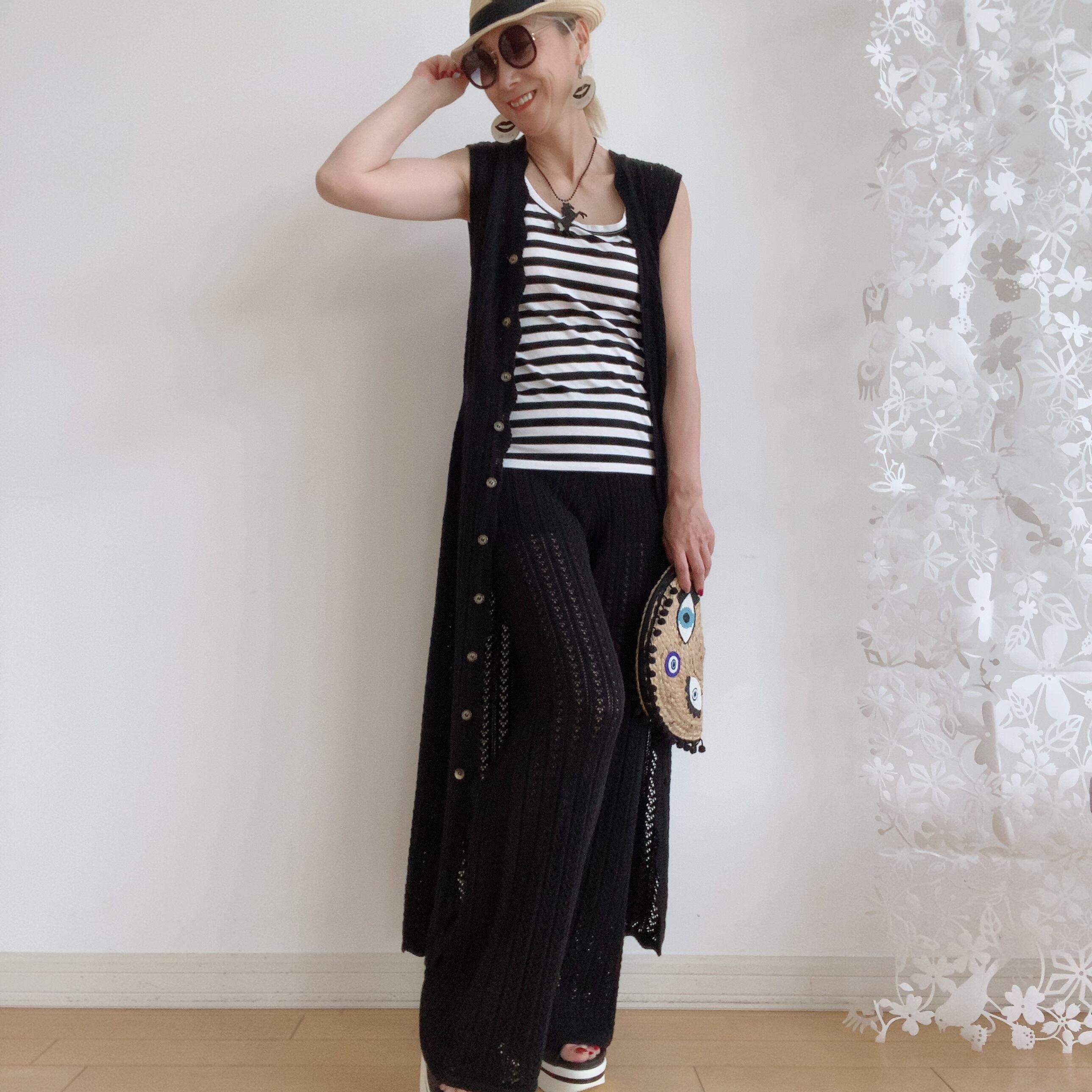 シンプルで合わせやすいブラックサングラスは、必須雨アイテム。